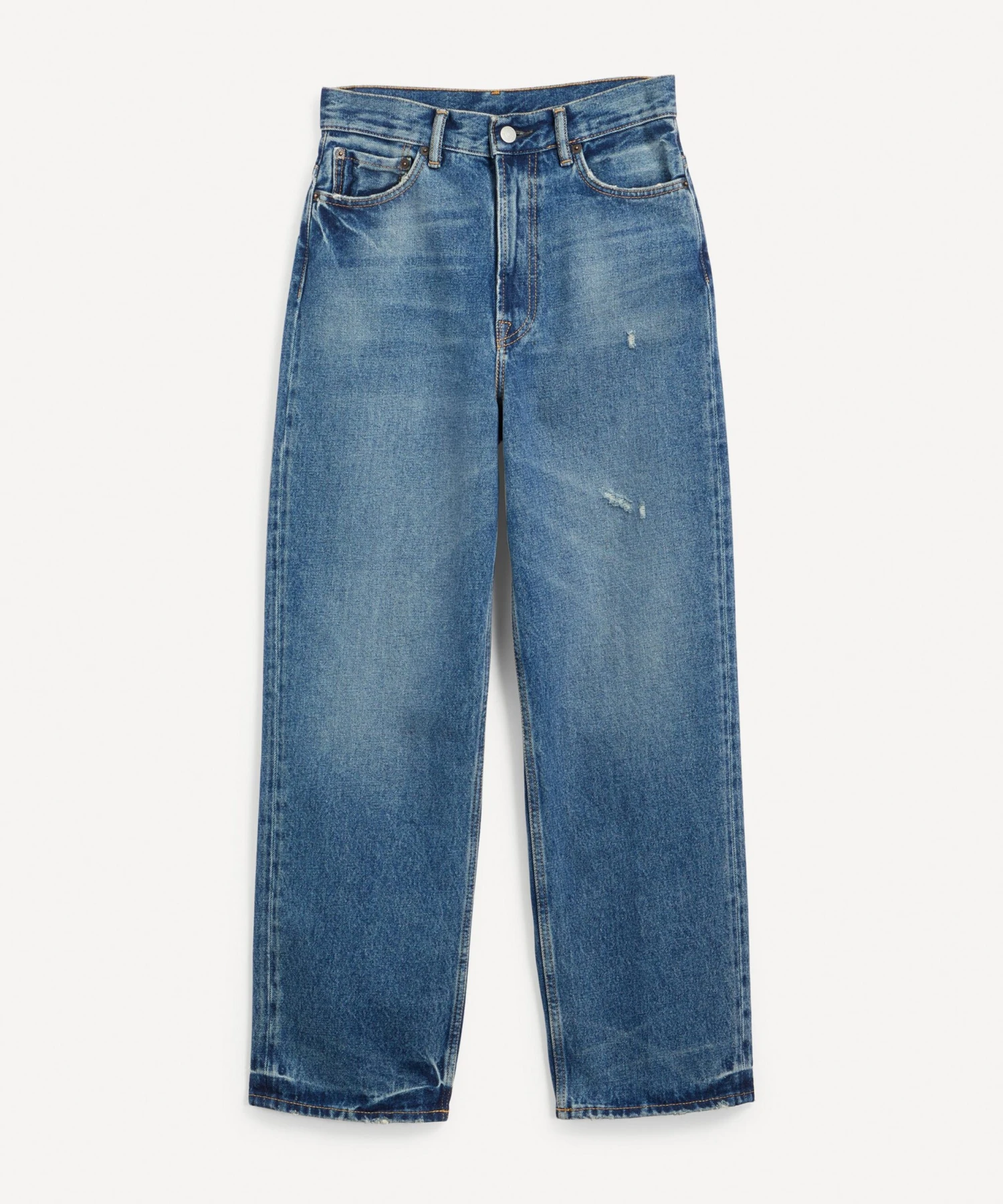 Cut for an on-trend relaxed, straight fit from a vintage-inspired blue cotton denim, they uphold the quality that has won Acne Studios cult-like veneration from fans, complete with distressed details throughout, the brand’s leather logo patch, a zipper fly and classic five pocket design.