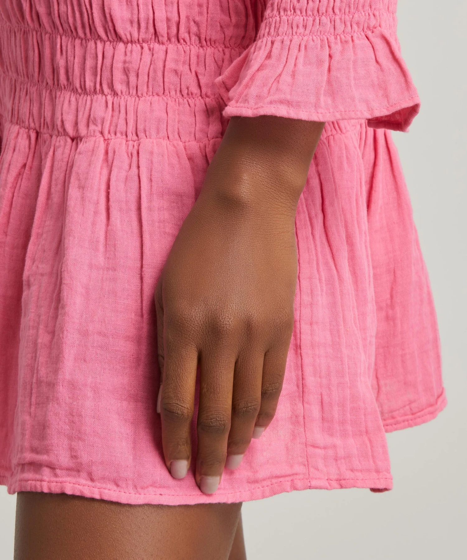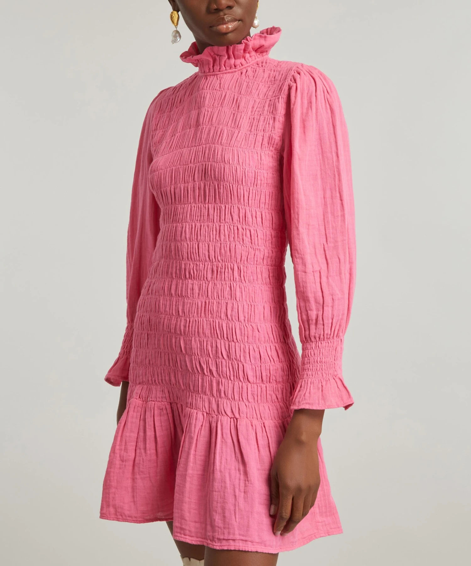 Pretty in pink, the Aleria Short dress from Maria de la Orden is a signature style from the Spanish brand.