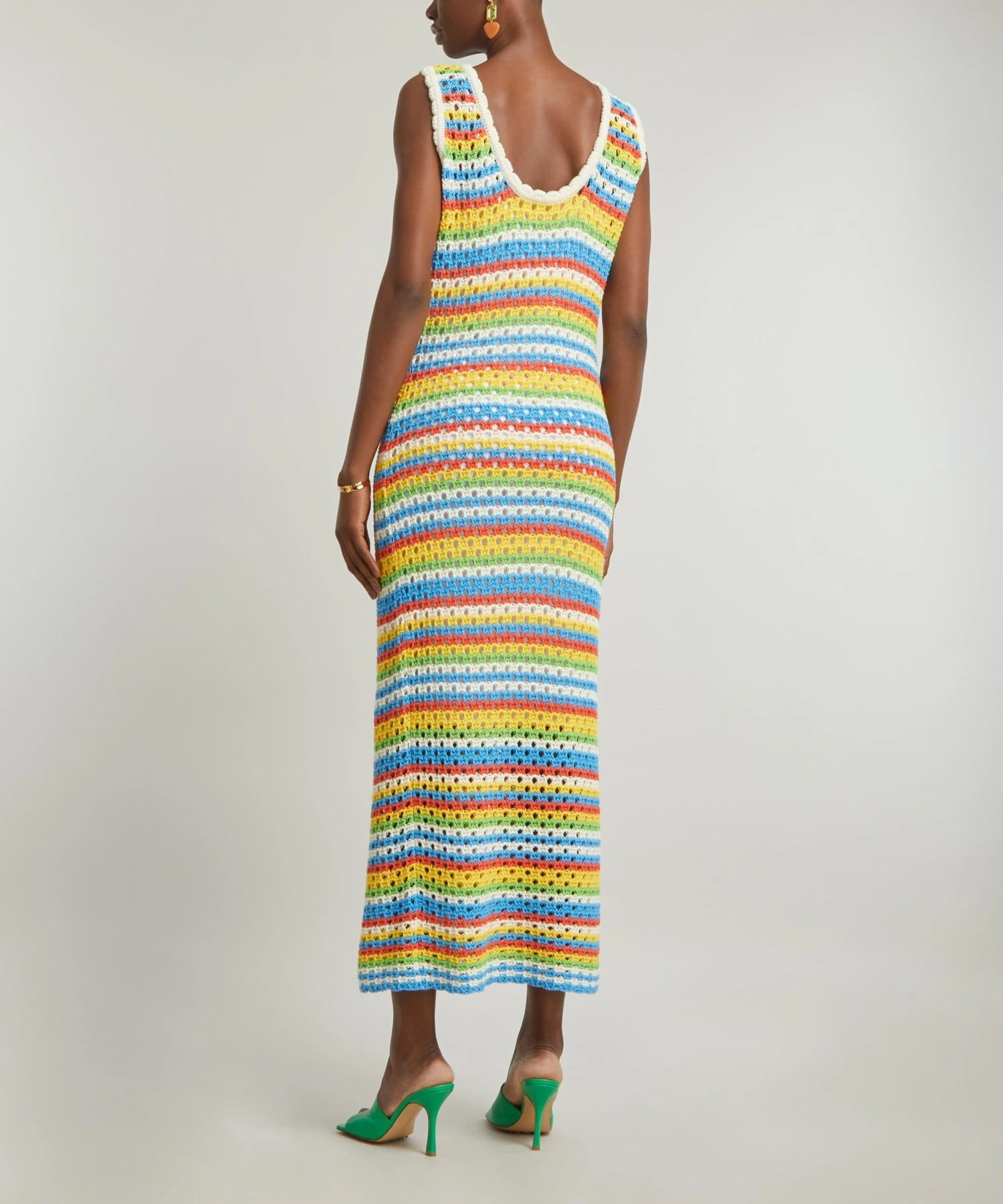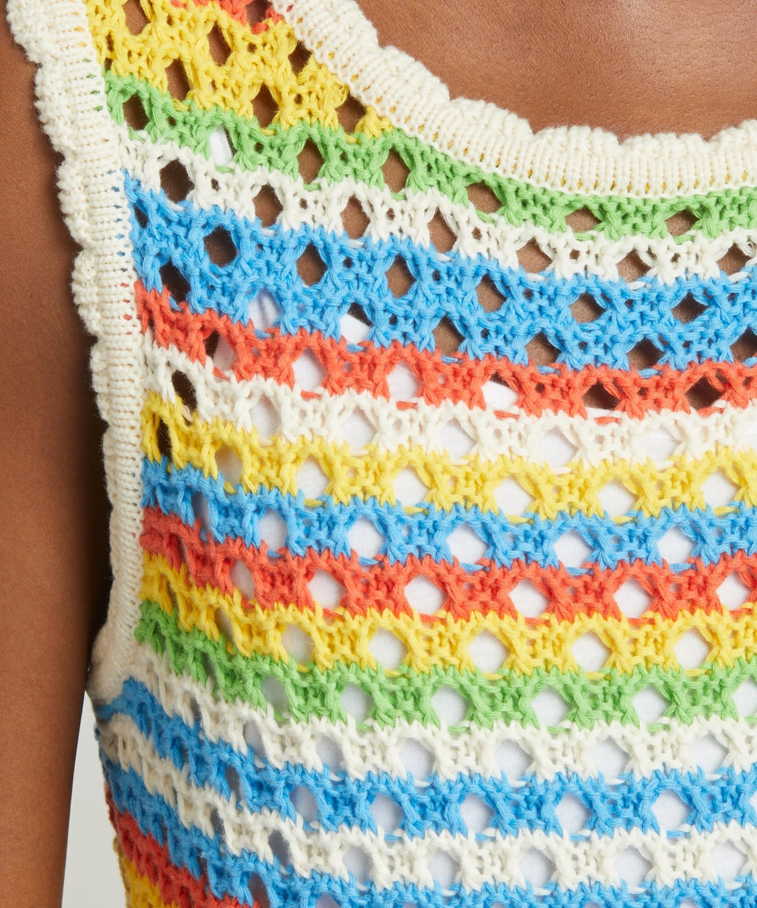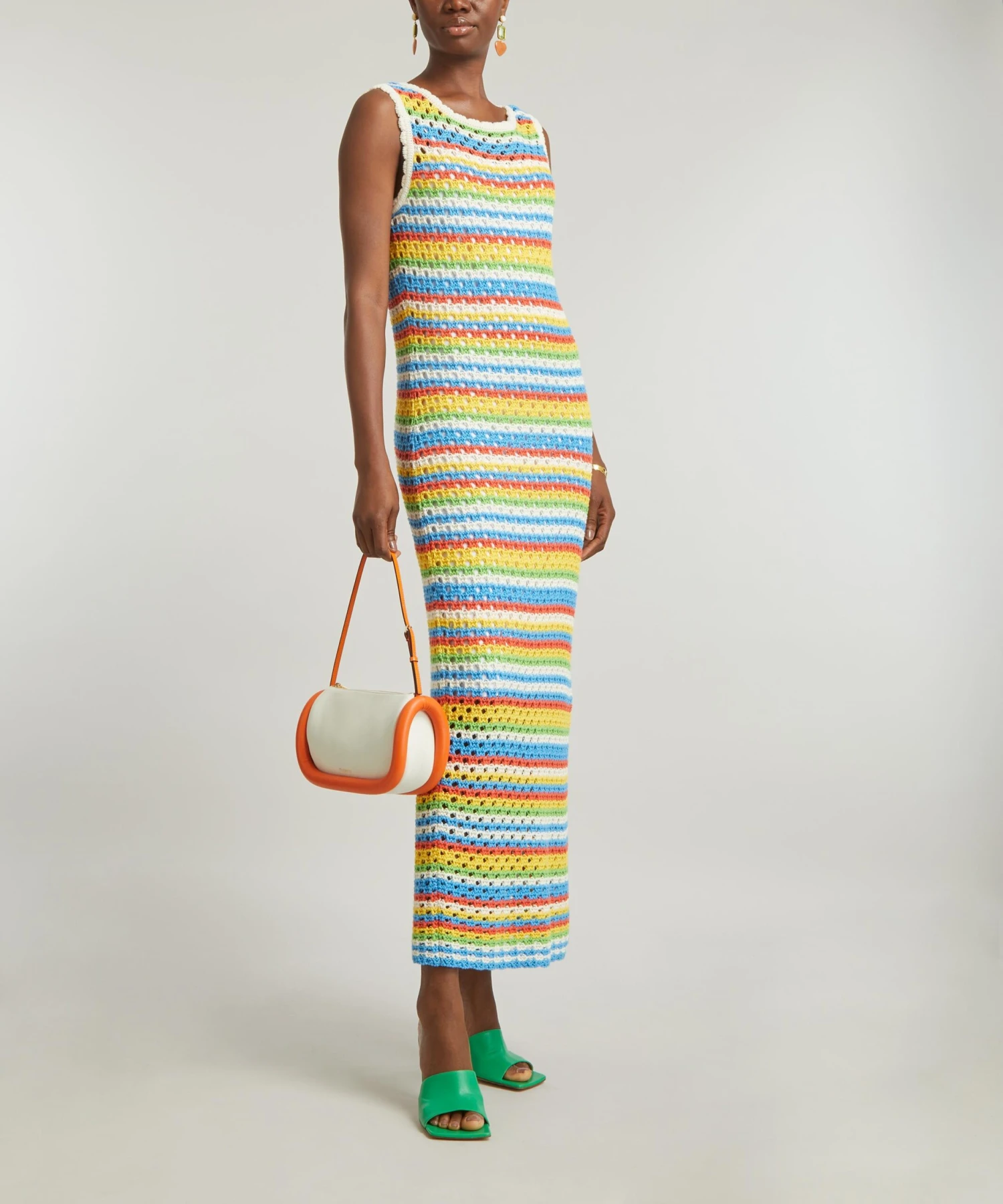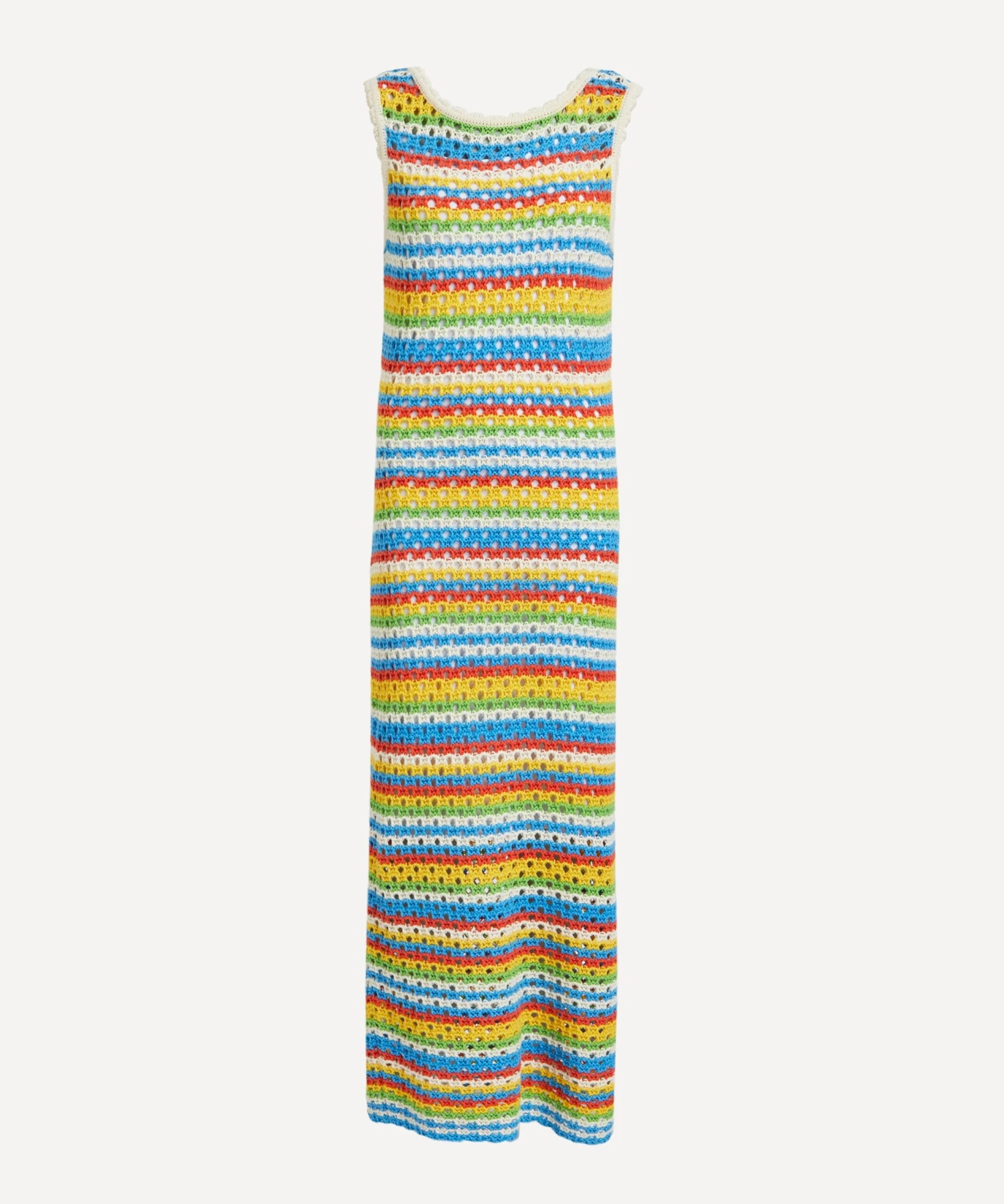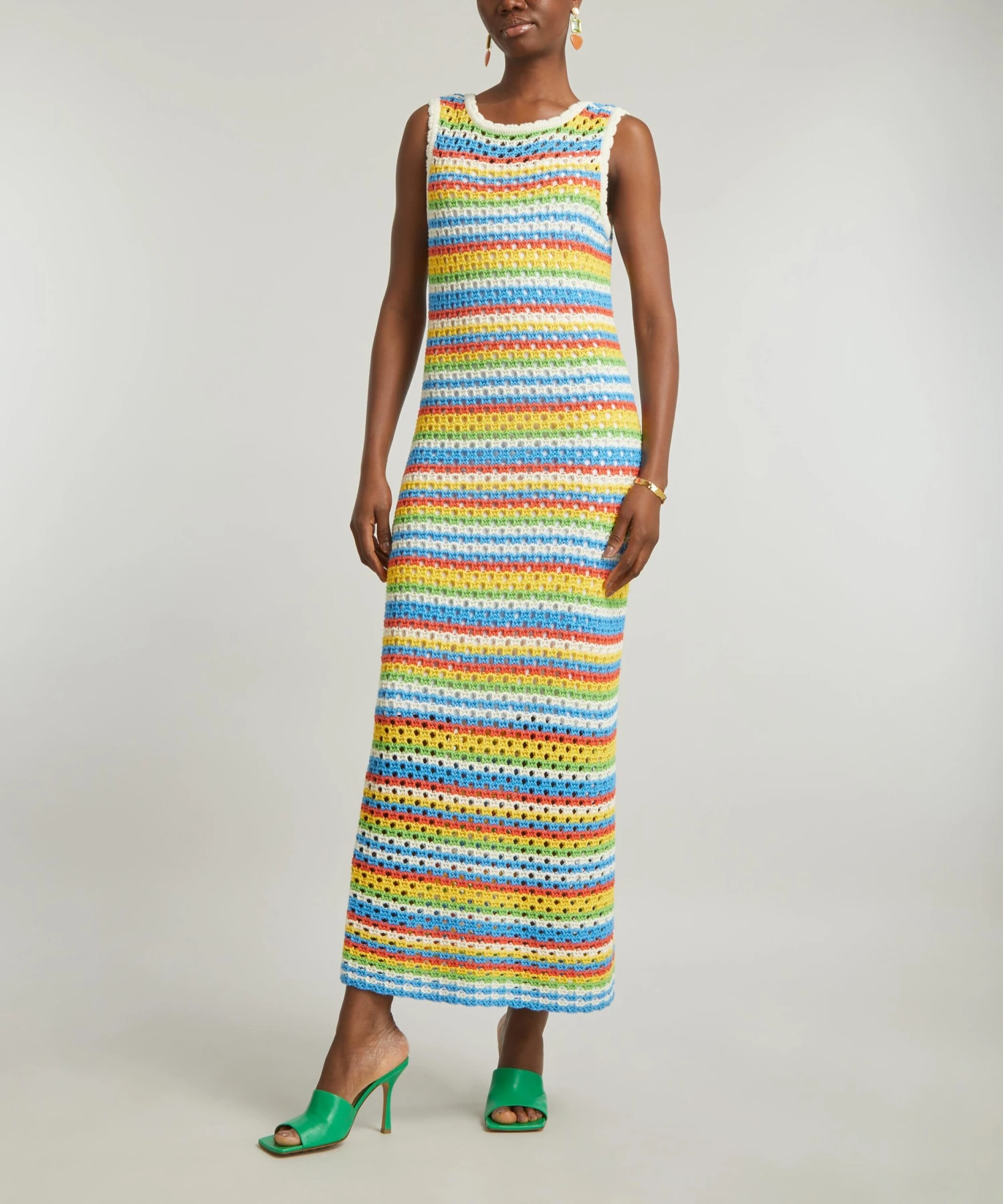 Bringing some bold stripes to your new season edit, the Bunty Stripe Knitted dress from KITRI is perfect under your favourite denim jacket – or over a bikini at the beach. Inspired by vintage crochet blankets, this stripy, sleeveless midi-dress has an easy straight-fit and an elegant scoop-neckline.