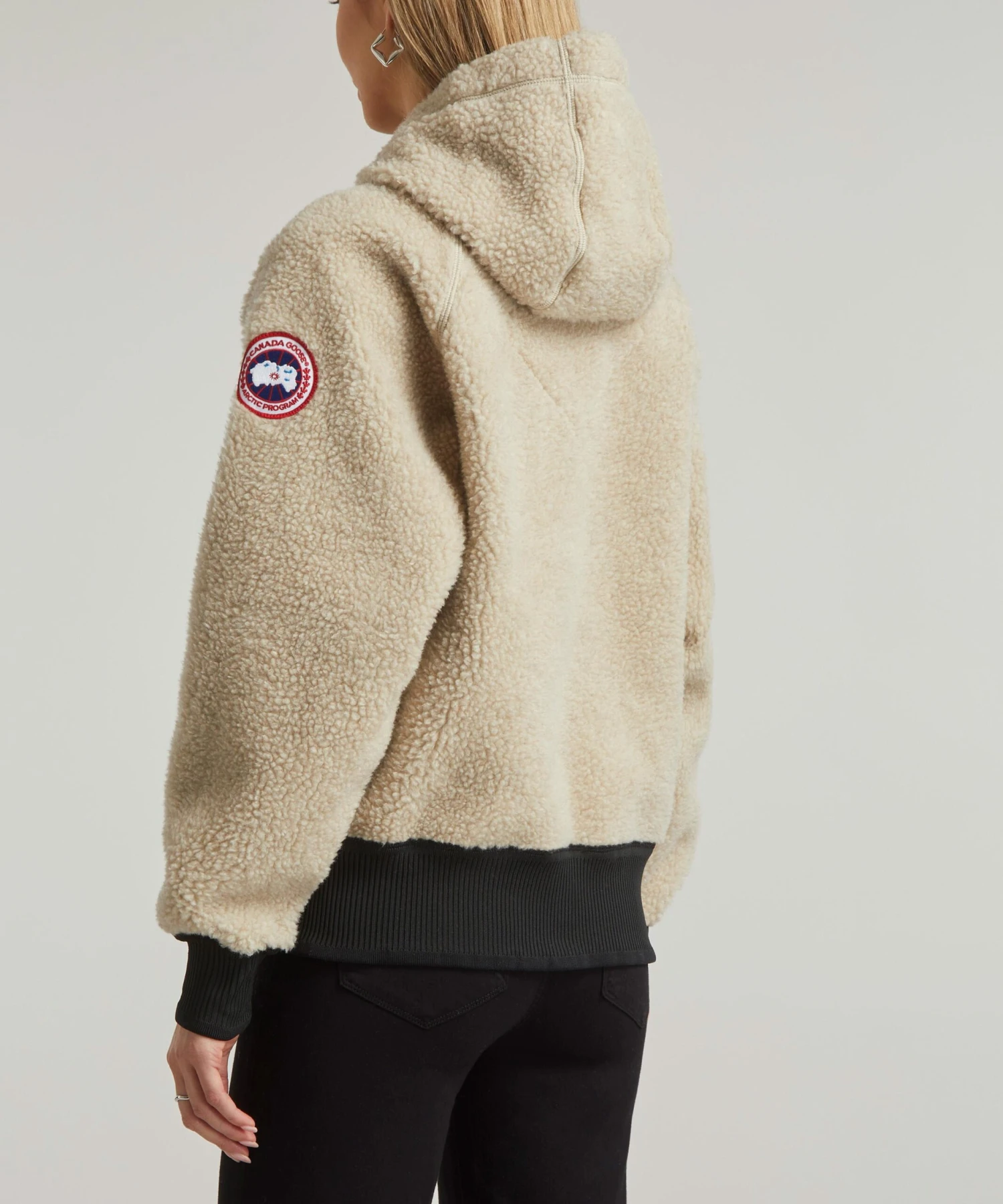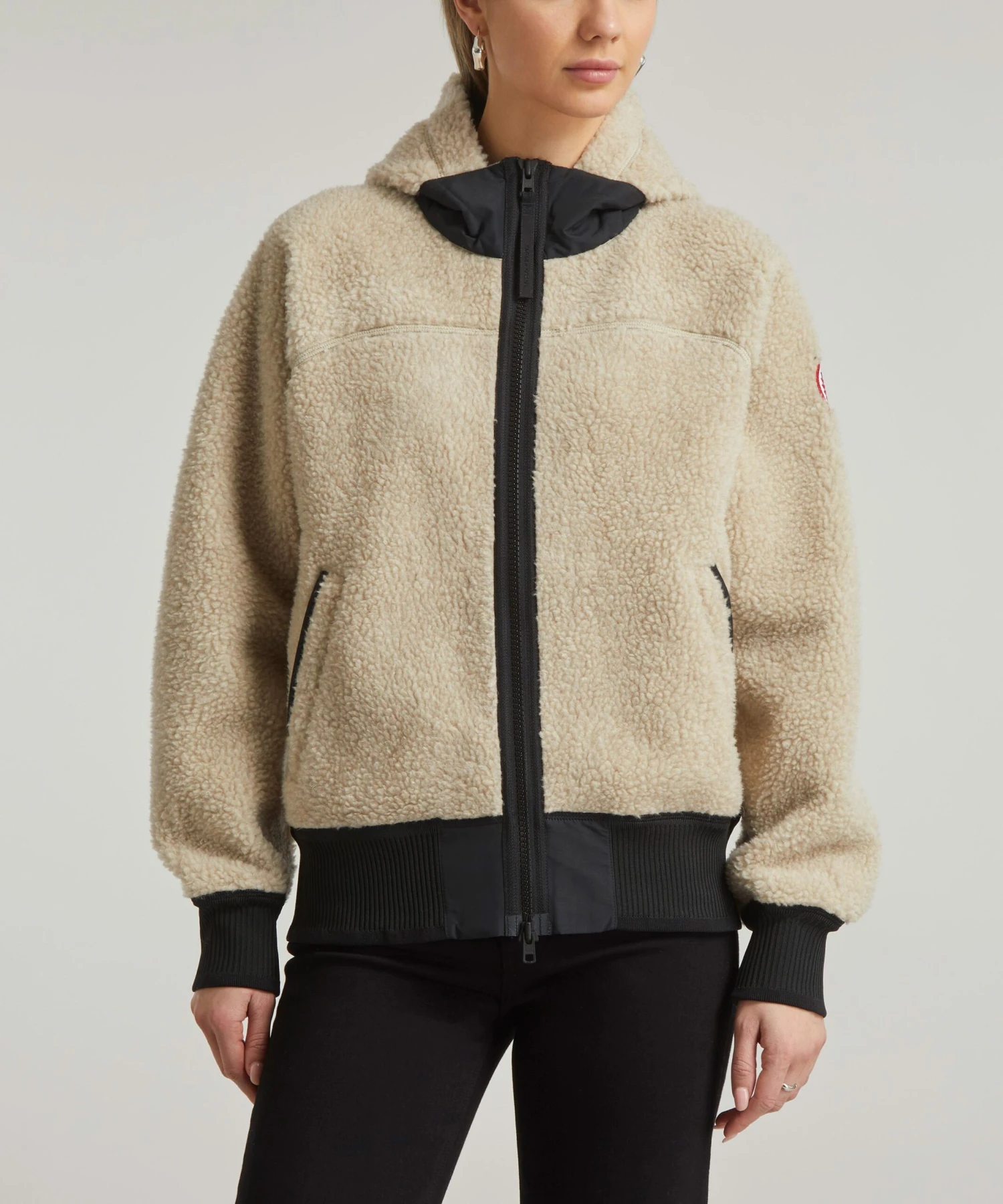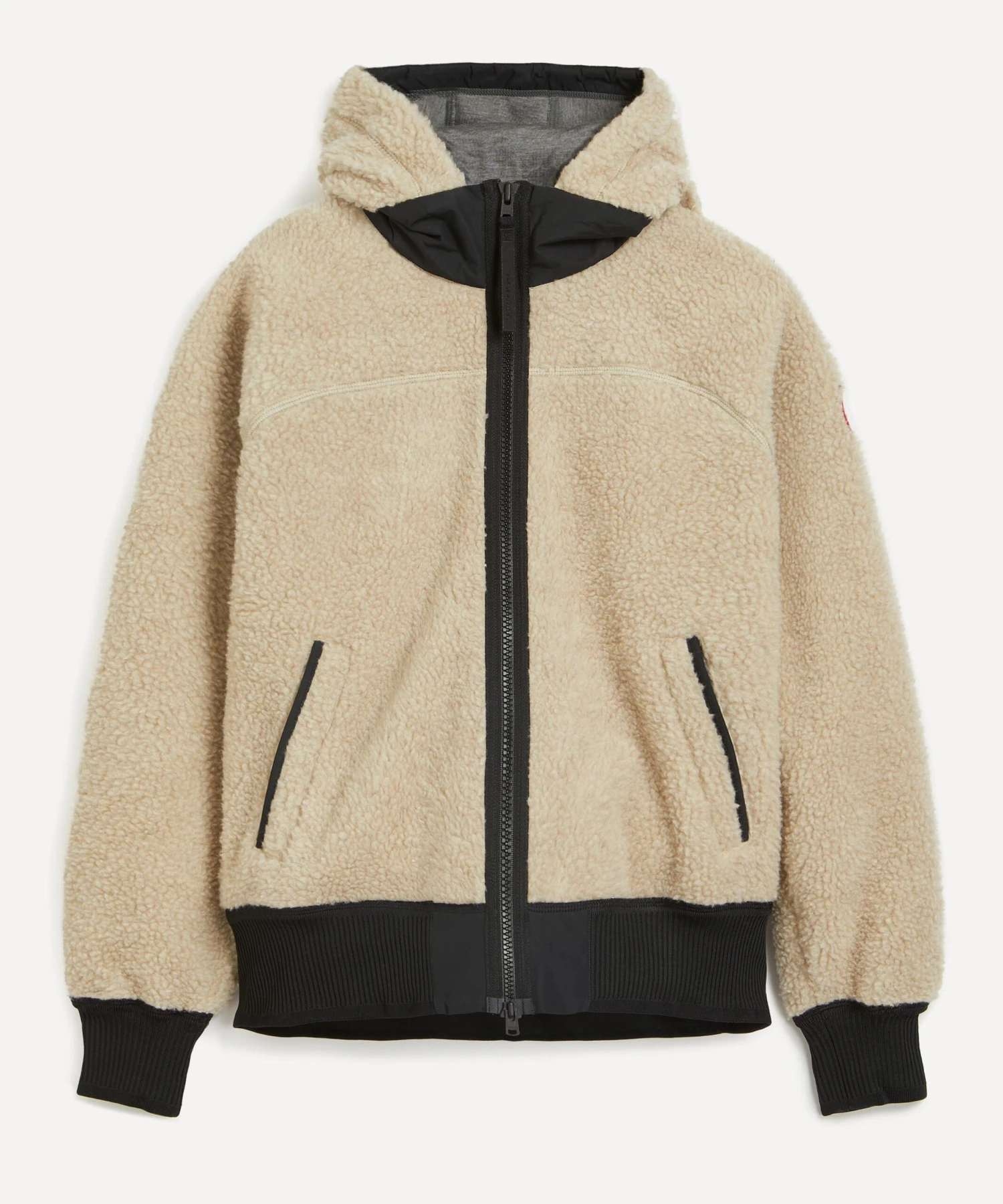 The Simcoe Fleece Hoody by outerwear experts Canada Goose is designed for fundamental warmth and protection from the elements. Super-snug, this warm woollen hooded jacket is crafted from a high-pile fleece, complete with an interior collar, rib-knit cuffs and hem, and signature double-stripe reflective details at the back.