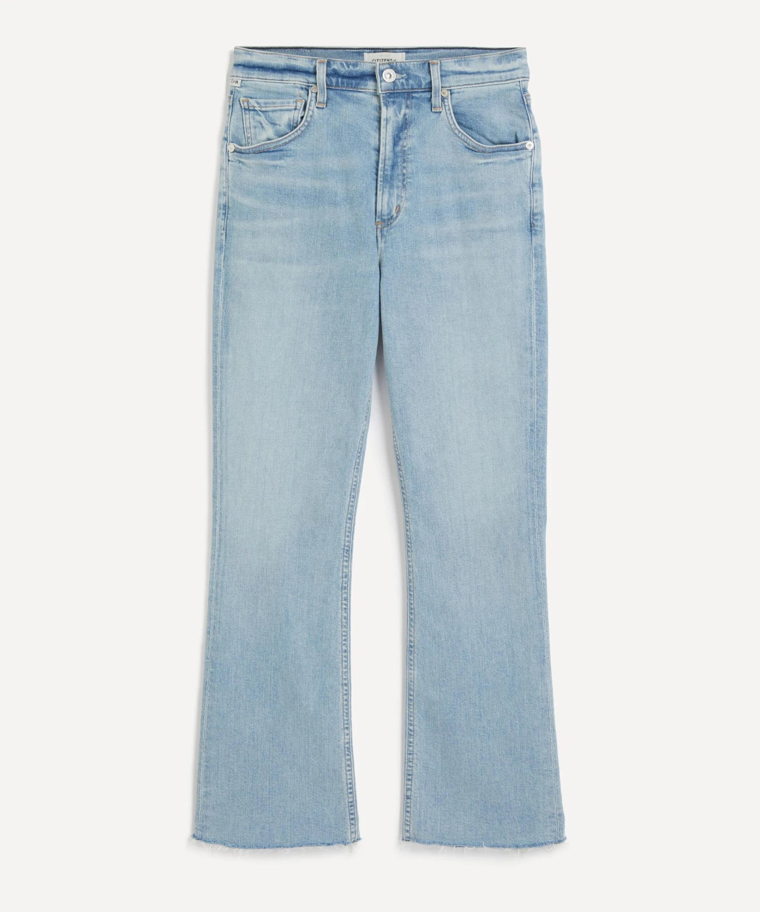 The Isola Mid-Rise Cropped Boot jeans are the ultimate go-to style with their flattering mid-rise and light indigo wash. Constructed from Comfort Stretch Denim for ultimate ease, its close-fitting leg features a cropped, subtle bootcut flare complete with lightly destructed, frayed hems for a ‘90s-infused, grungy finish.