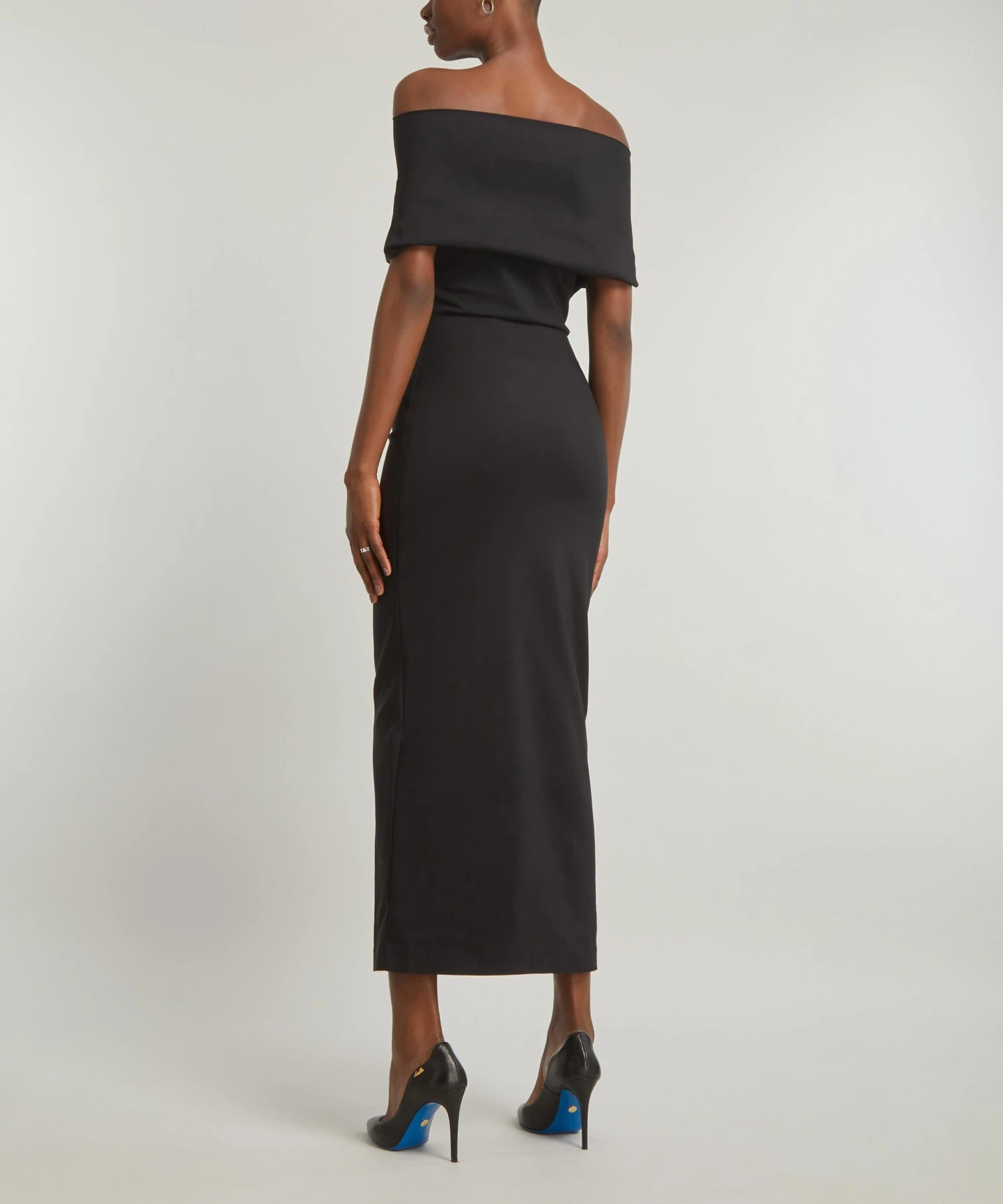 Make an effortlessly sophisticated statement in the Sheer Glove Dress from luxury Australian label, BEARE PARK. Luxuriously crafted from a cotton-stretch jersey, it fits like a glove with its form-fitting silhouette featuring an elegant, off-the-shoulder neckline.