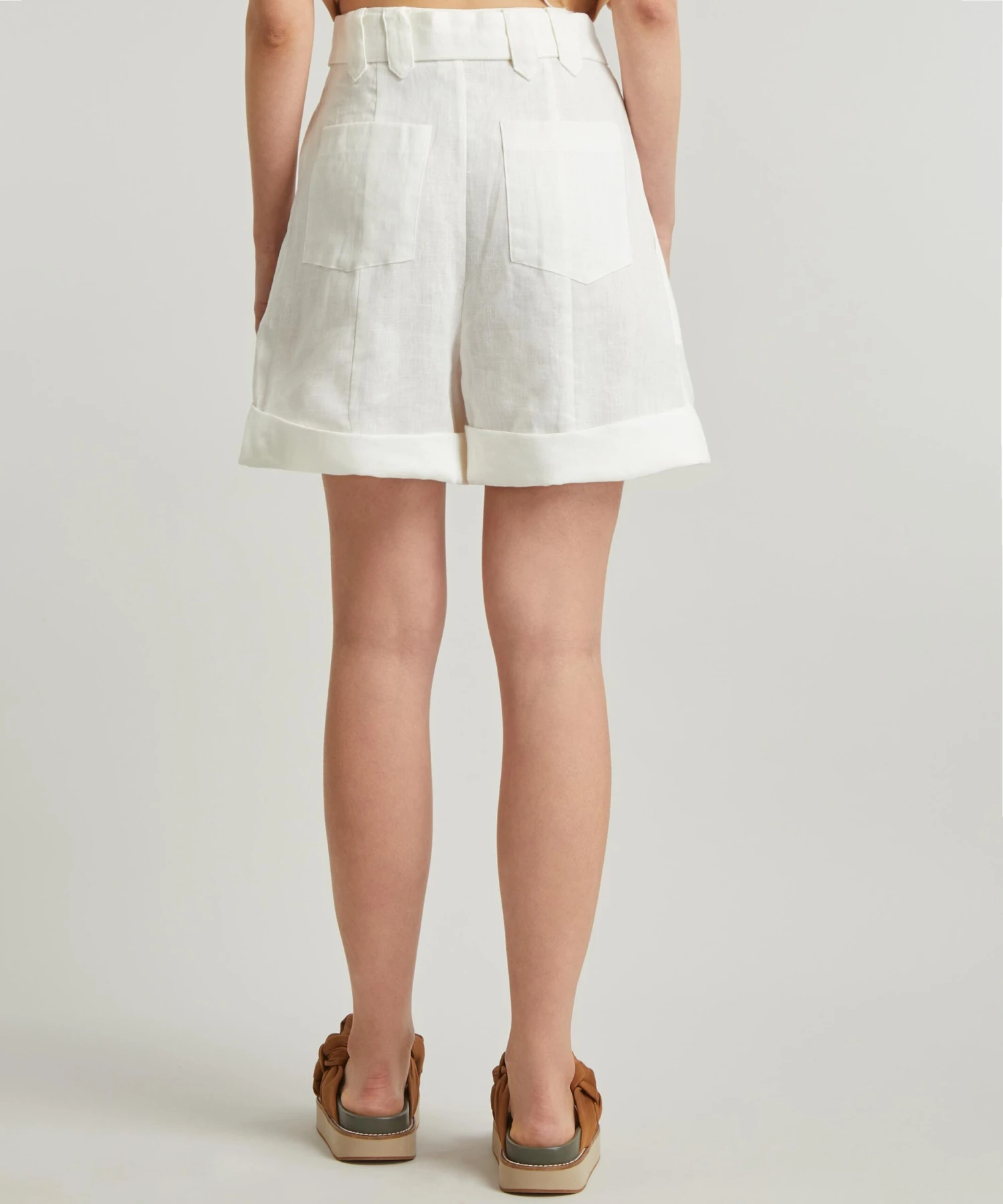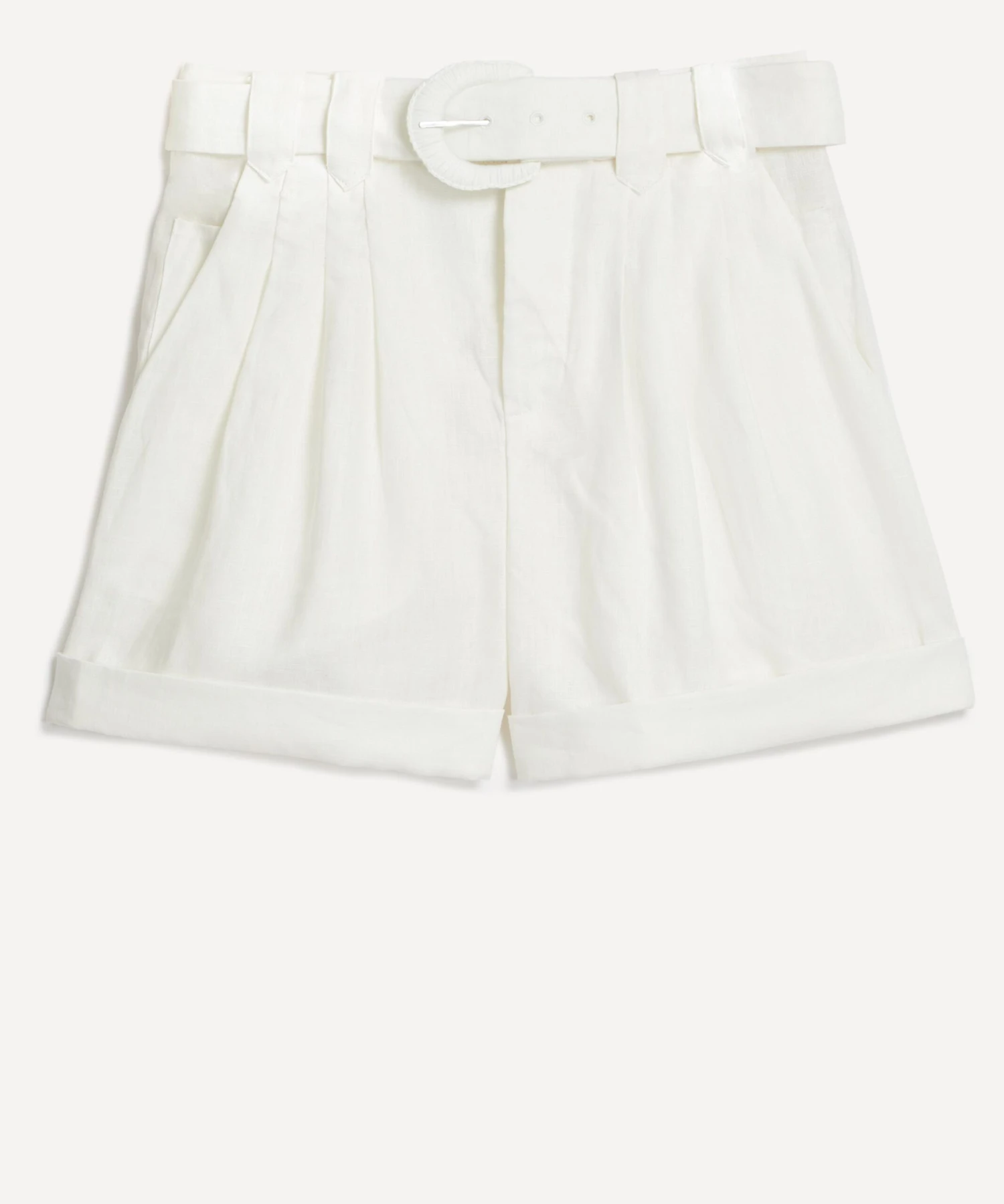 Classic and chic, this tailored pair is crafted from airy linen for a high-waisted, cropped silhouette with turned-up hems. Fitted at the waist with a detachable buckle belt, it’s finished with structured front pleats, and pockets to the side and back.