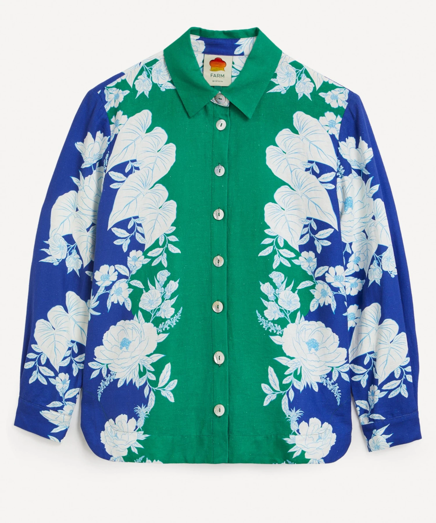 The Soft Garden shirt from Rio de Janeiro-based label FARM Rio brings some Brazilian vivacity to your new-season edit. Bold and brimming with blue botanicals, this linen-blend shirt is cut for a relaxed fit with a point collar, and a buttoned closure and cuffs embellished with mother-of-pearl buttons.