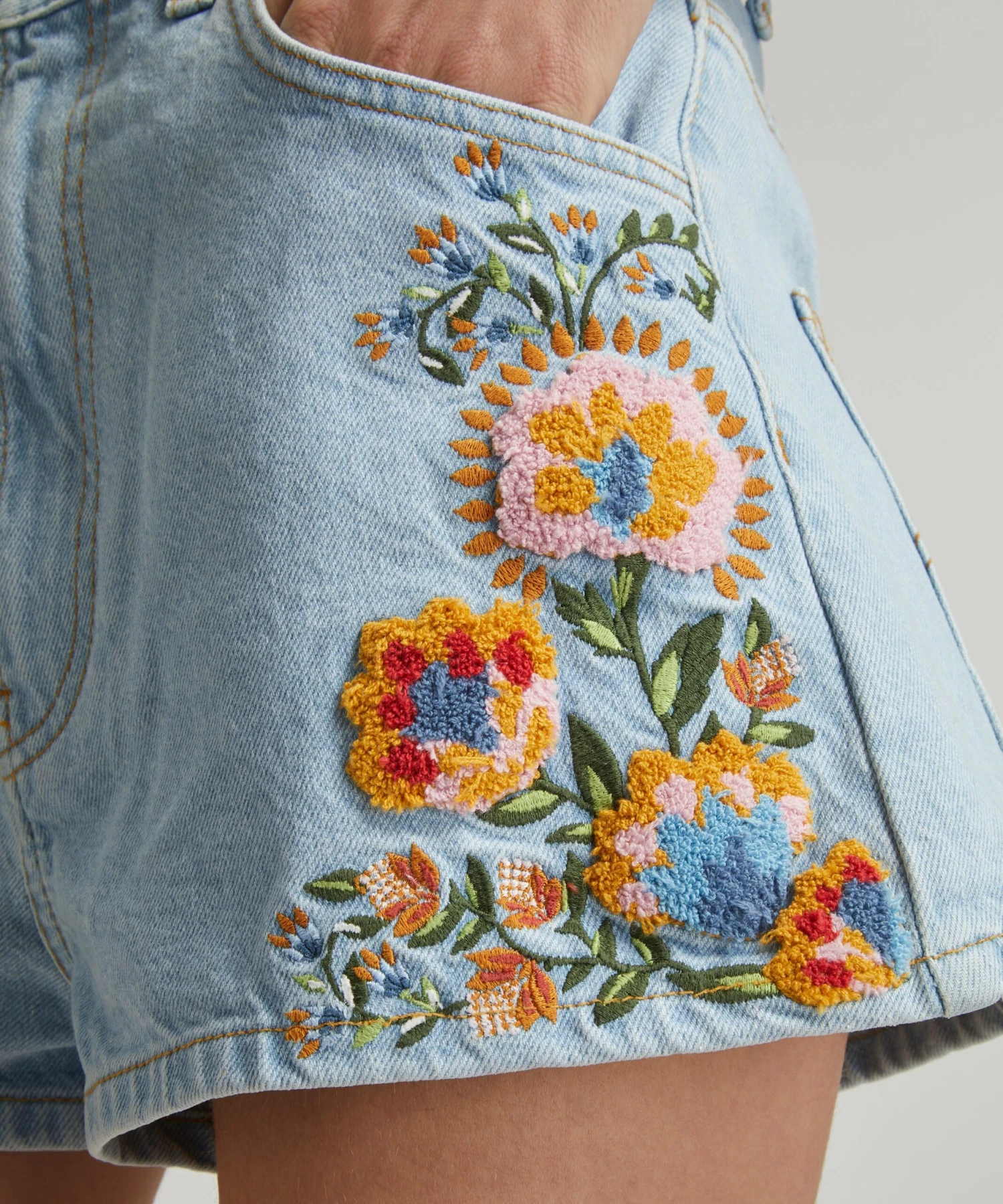 - Summer Garden Embroidered Denim shorts
