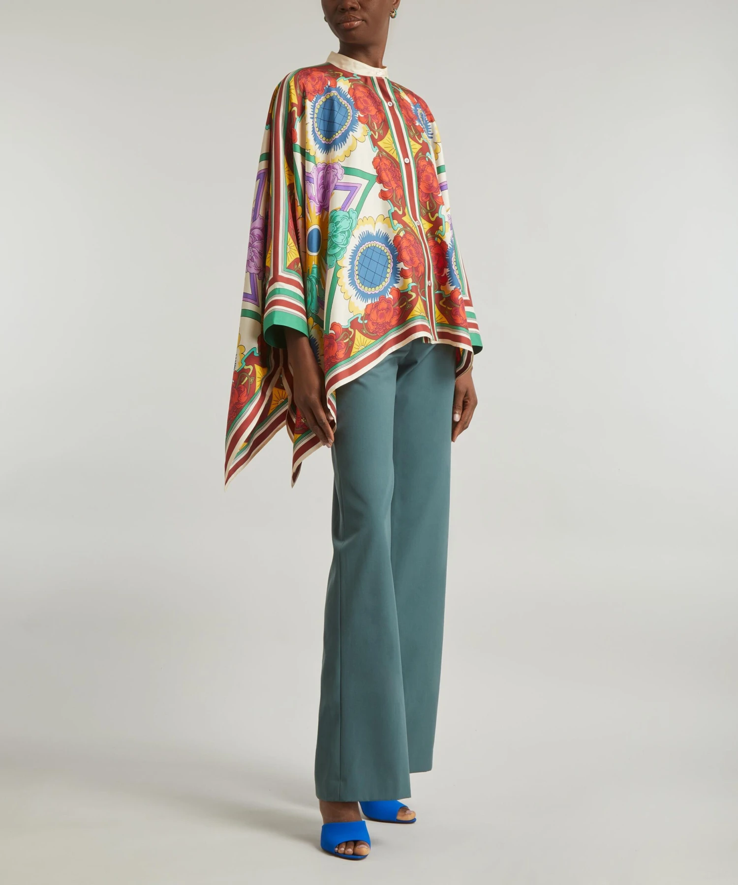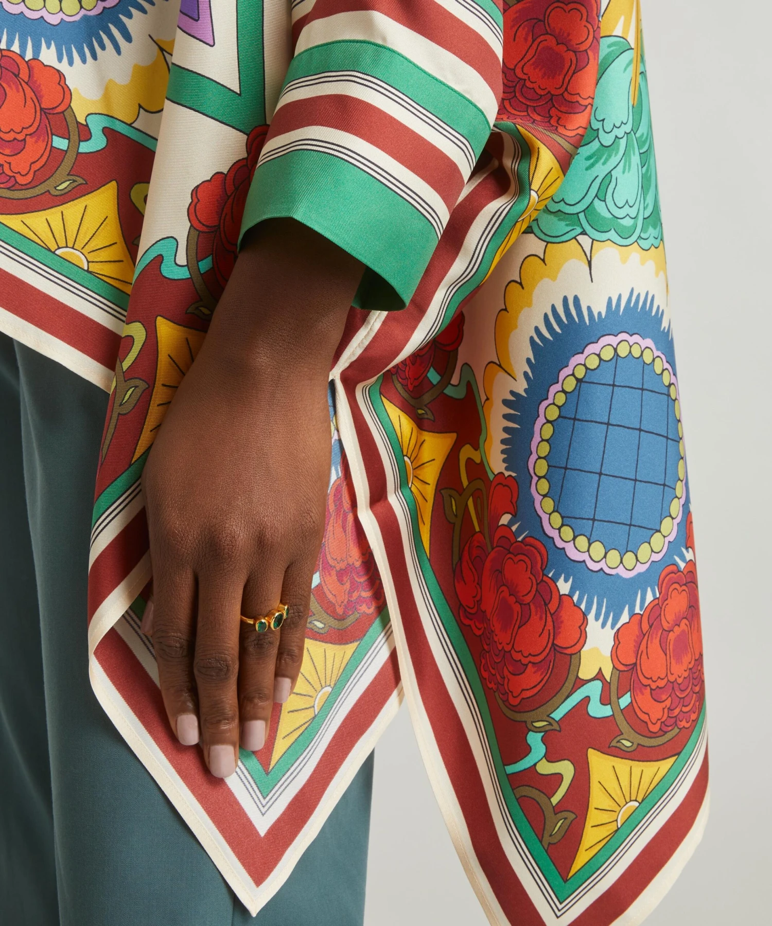 La DoubleJ’s penchant for an over-blown aesthetic shines from the printed, poncho-style Foulard shirt.