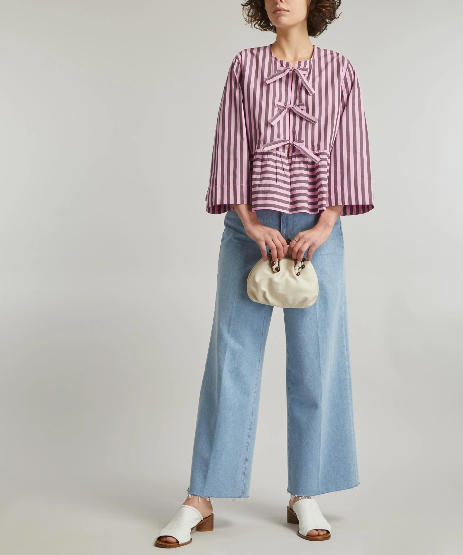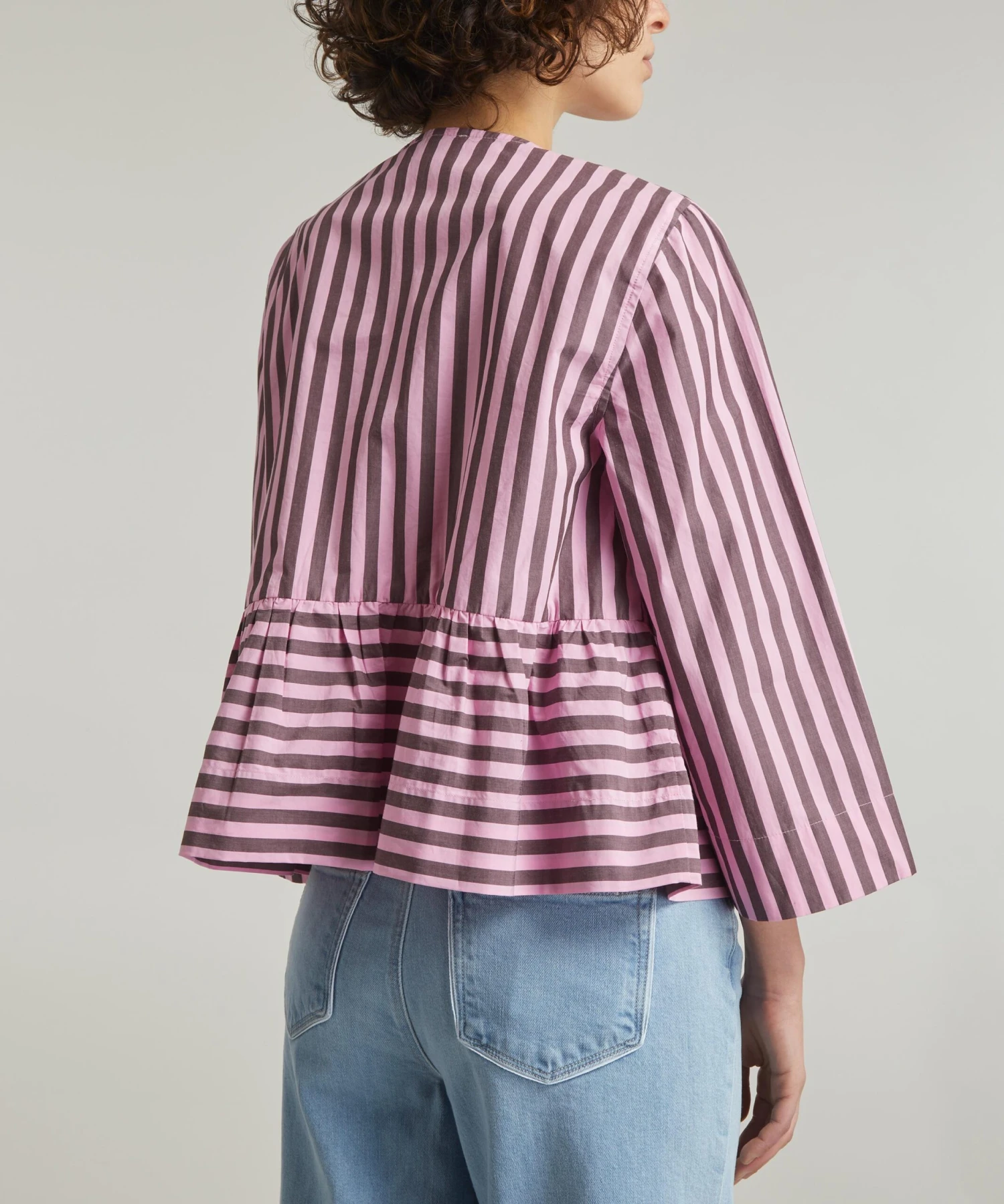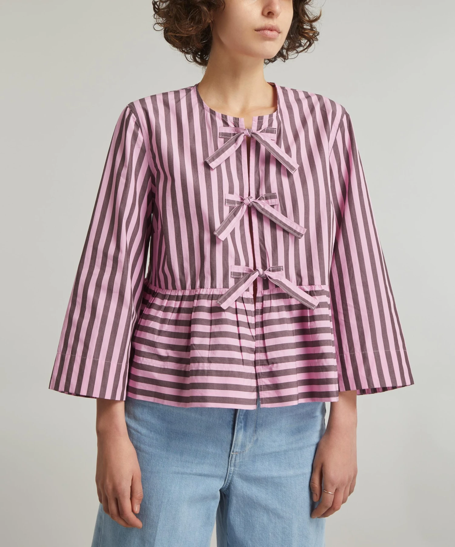 Crafted from cotton for a voluminous, peplum silhouette with wide sleeves and an elegant round neckline, its front closure is secured with three adjustable tie bands. Pair it with the matching Striped Cotton Smock Skirt for a statement look.