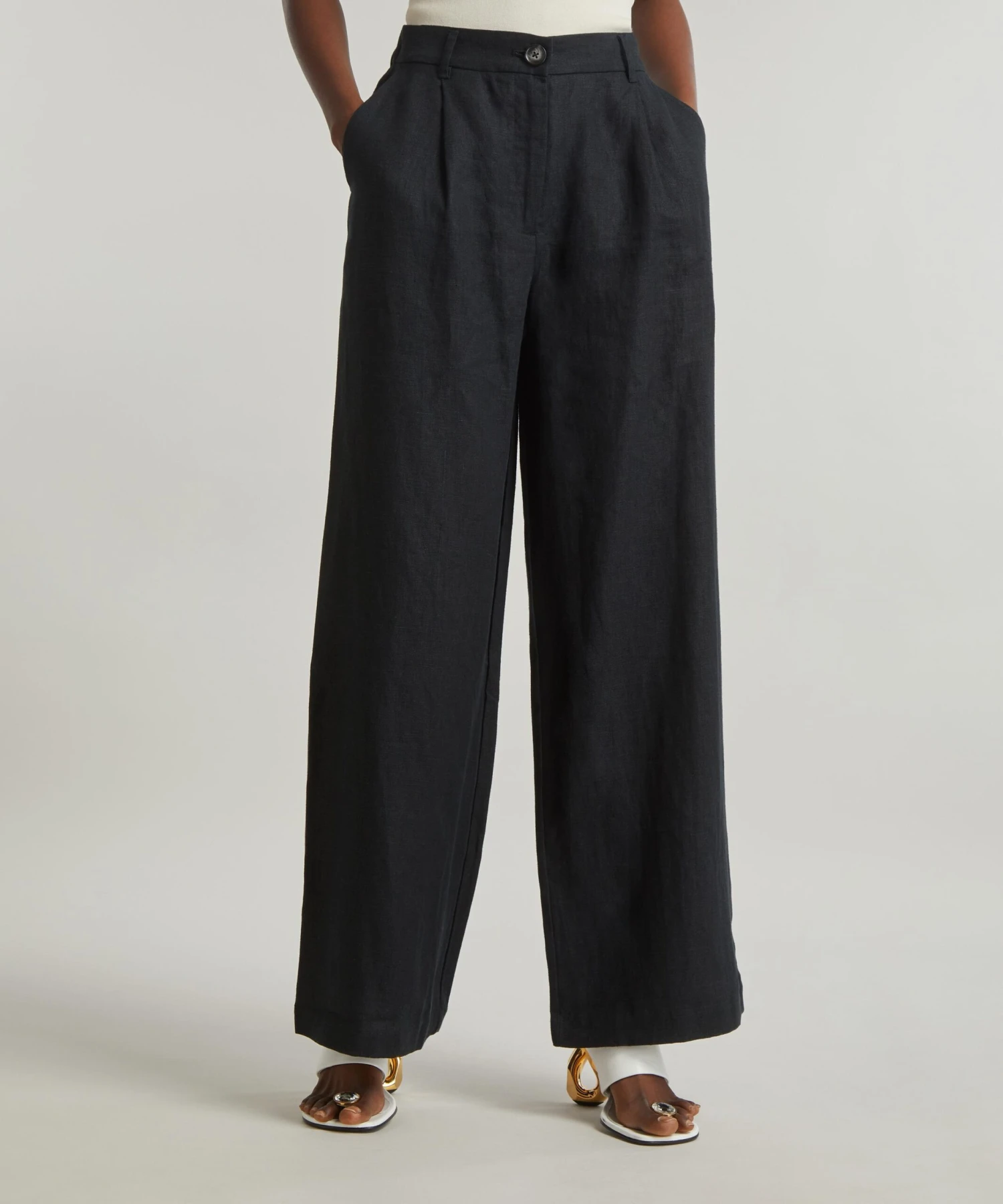 A staple addition to your new season wardrobe, the Hainault trousers from Aligne boast an effortlessly sophisticated style, crafted from a breathable linen. Cut to a wide leg silhouette, these relaxed trousers feature pleated front details, side seam pockets and an elasticated back waistband for ultimate comfort – complete with belt loops and mock back pockets for a tailored finish.