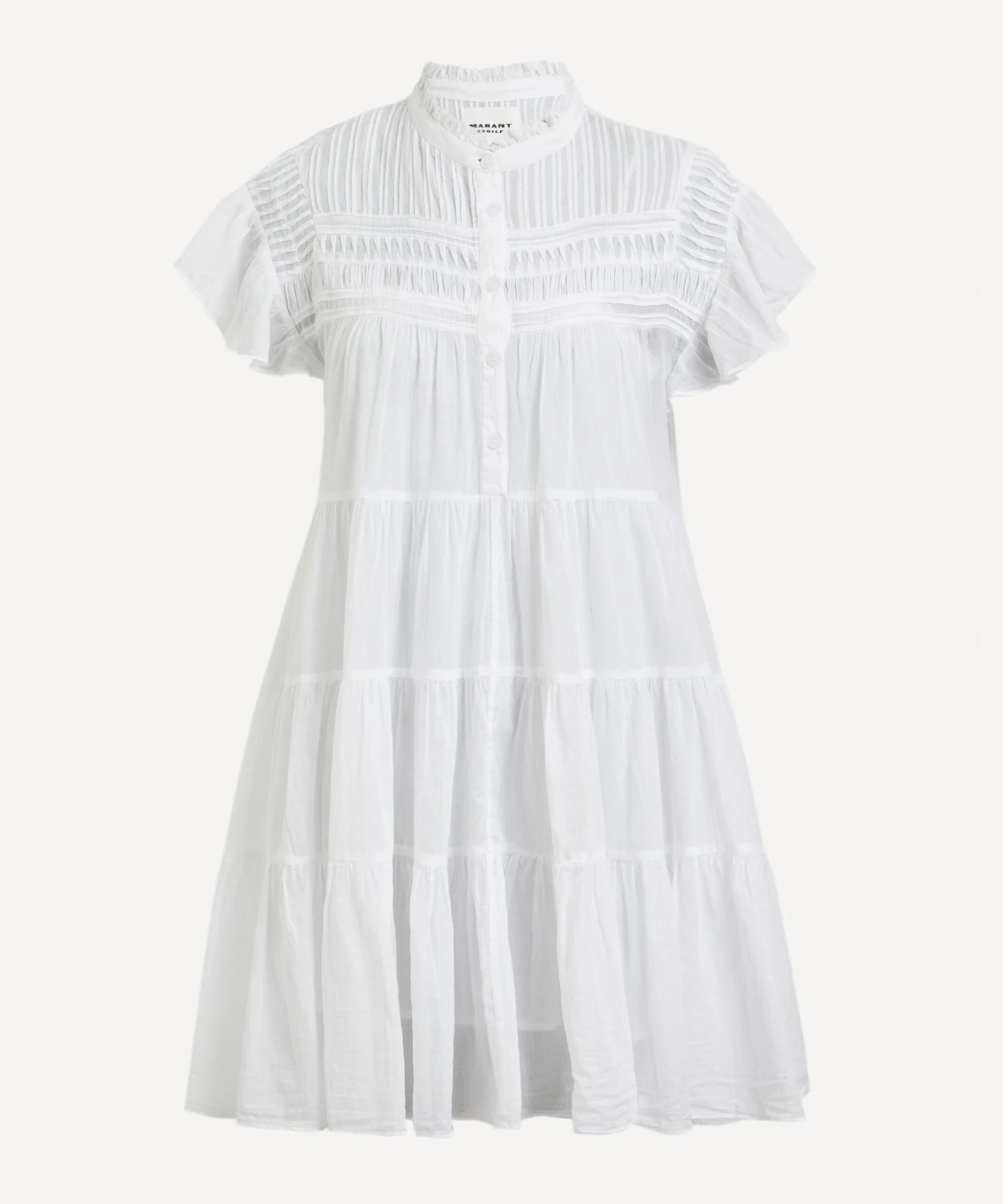 A staple for the summer season, Isabel Marant Étoile’s signature Laniyake Ruffle mini-dress returns just in time for the milder months ahead. Lightweight and loose with its tiered silhouette and fluttery short-sleeves, it’s crafted from cotton and features a buttoned closure detailed with intricate smocking across its yoke.