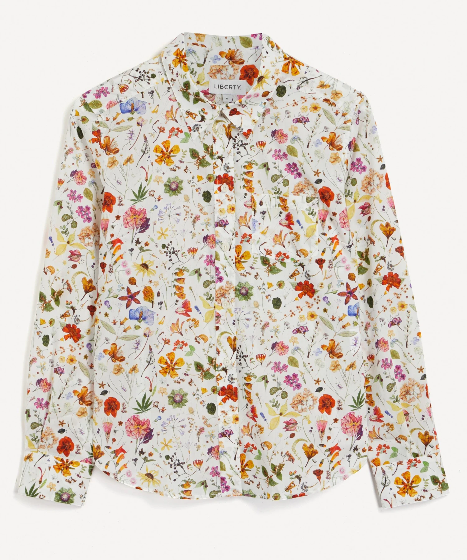 Master daytime cool with the iconic Floral Eve Liberty shirt. Its construction from Tana Lawnâ„¢ cotton provides a colour-rich surface and smoothly soft hand-feel, perfect for wearing directly against the skin, while chest darts provide a flattering fit. This shirt features our Floral Eve print – taken from a large botanical painting by Rachel Pedder Smith, entitled The Herbarium Specimen. Let this dappled burst of colours and print lead as your ensemble’s statement piece on dress-down days – pair with high-waisted tailored trousers for a classic aesthetic with a slick edge.