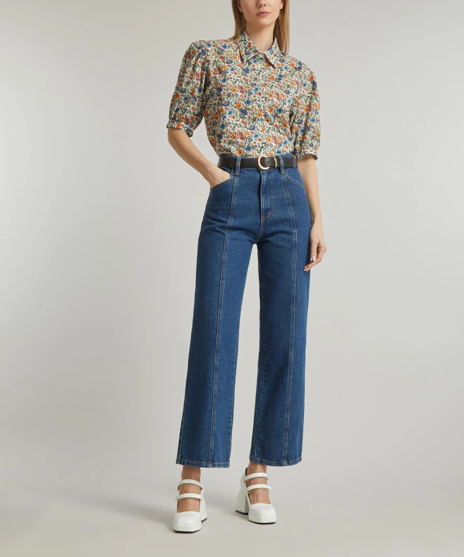 The puff-sleeve shirt is softly flattering, with straight-cut silhouette, double layer back yoke and voluminous sleeves created from delicate box pleats at the shoulder. Complete with a clean front placket, this shirt is expertly printed in Italy with our Rachel print, inspired by Sedgemere, a Liberty London furnishing fabric originally designed in 1988, featuring hand painted botanical flowers, nestled among lush green foliage. The Liberty team suggest complementing the floral design with minimalistic styling in muted block colours, letting the shirt lead as your ensemble’s statement piece on dress-down days.