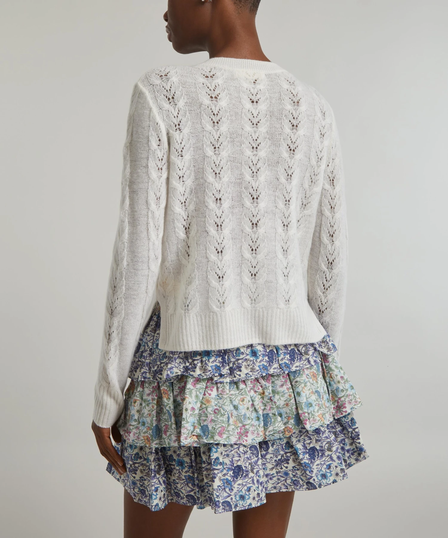 Featuring delicate pointelle stitching, this lightweight knit is crafted from a luxuriously soft wool and cashmere-blend, complete with an elegant round neckline, long sleeves and ribbed trims for a cosy finish.