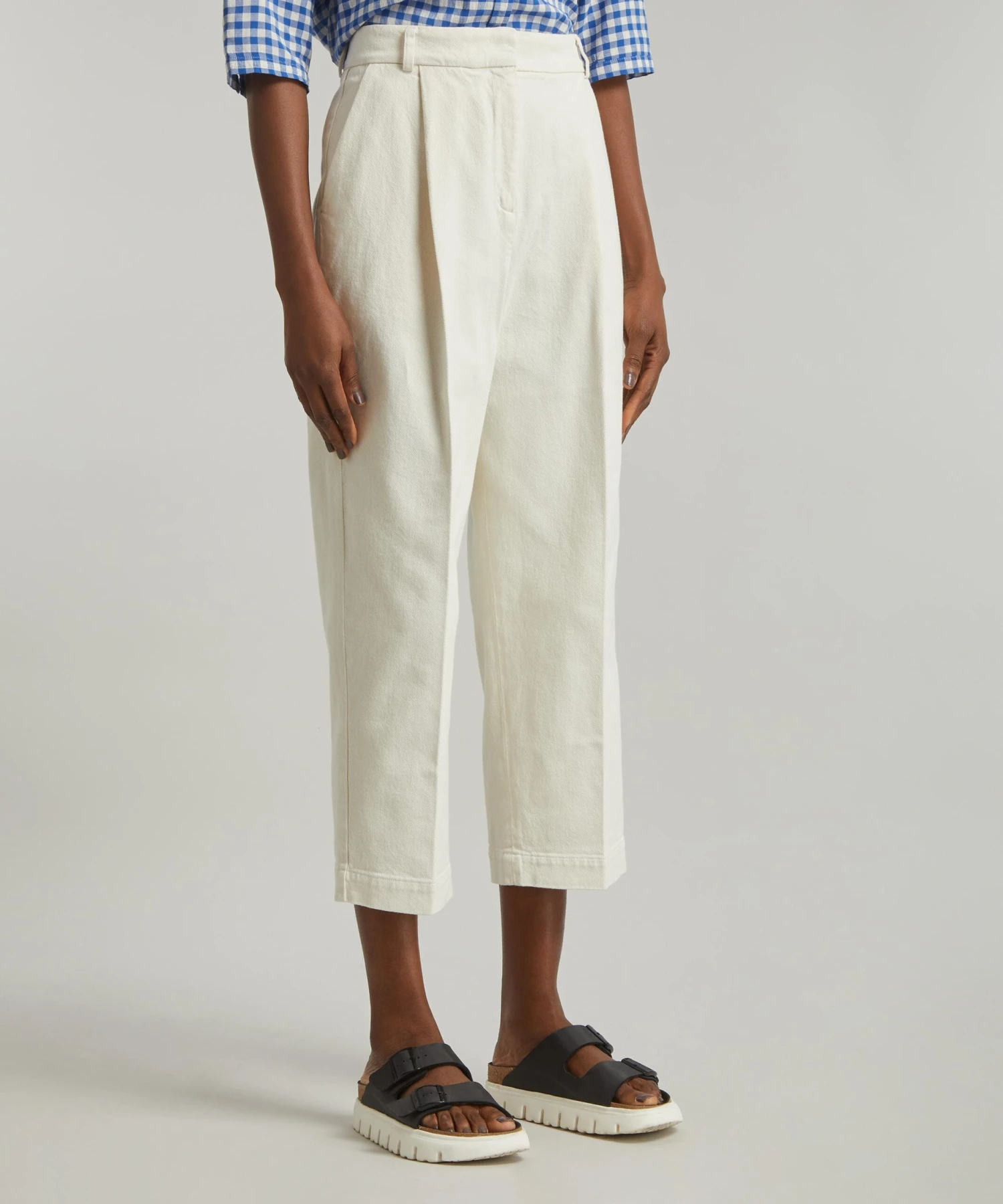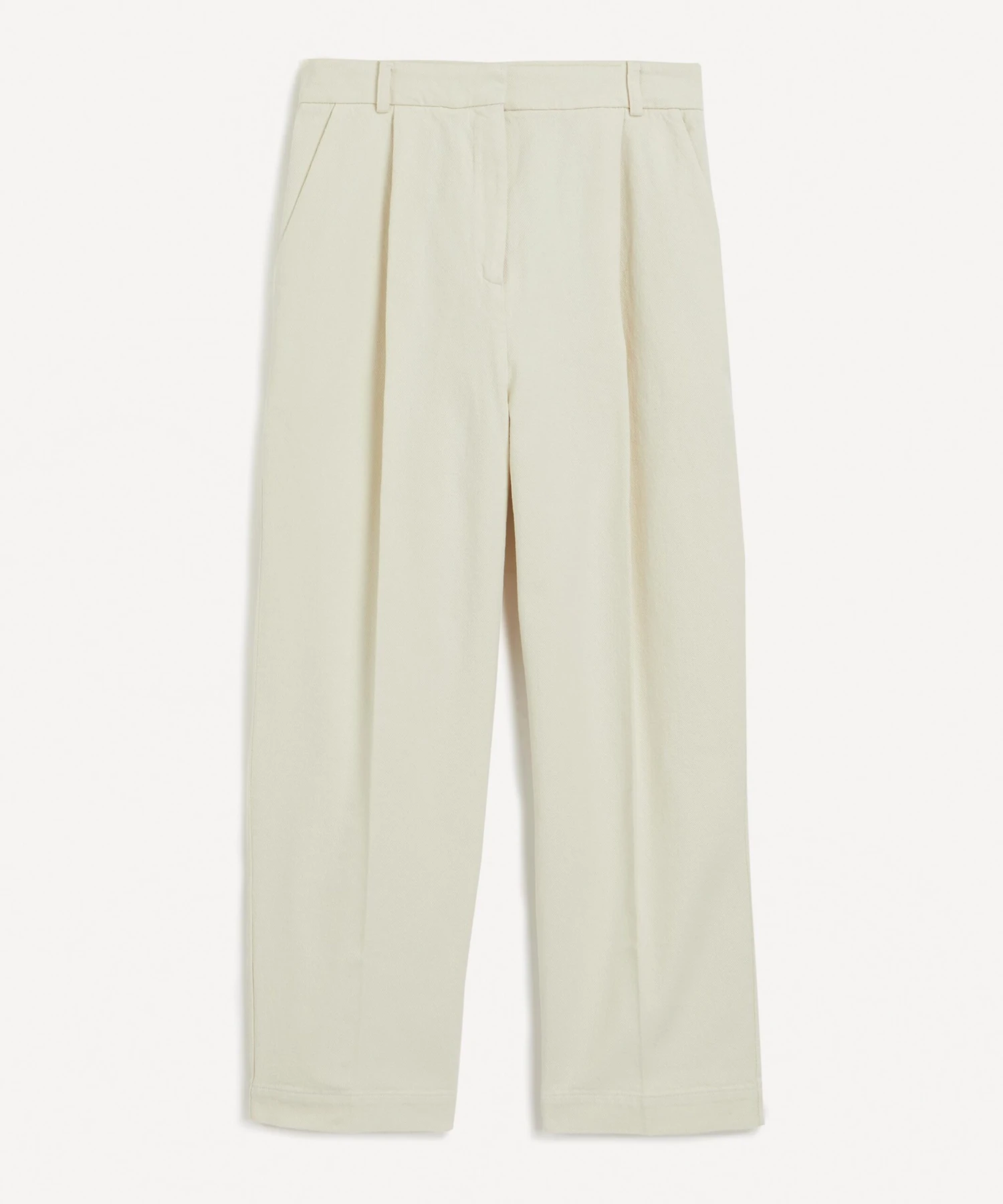 Crafted from garment-dyed cotton twill for a relaxed, wide-leg silhouette, it’s fitted with a hook-and-bar fastening, two side pockets and front pleats at the hip for a classic tailored finish.
