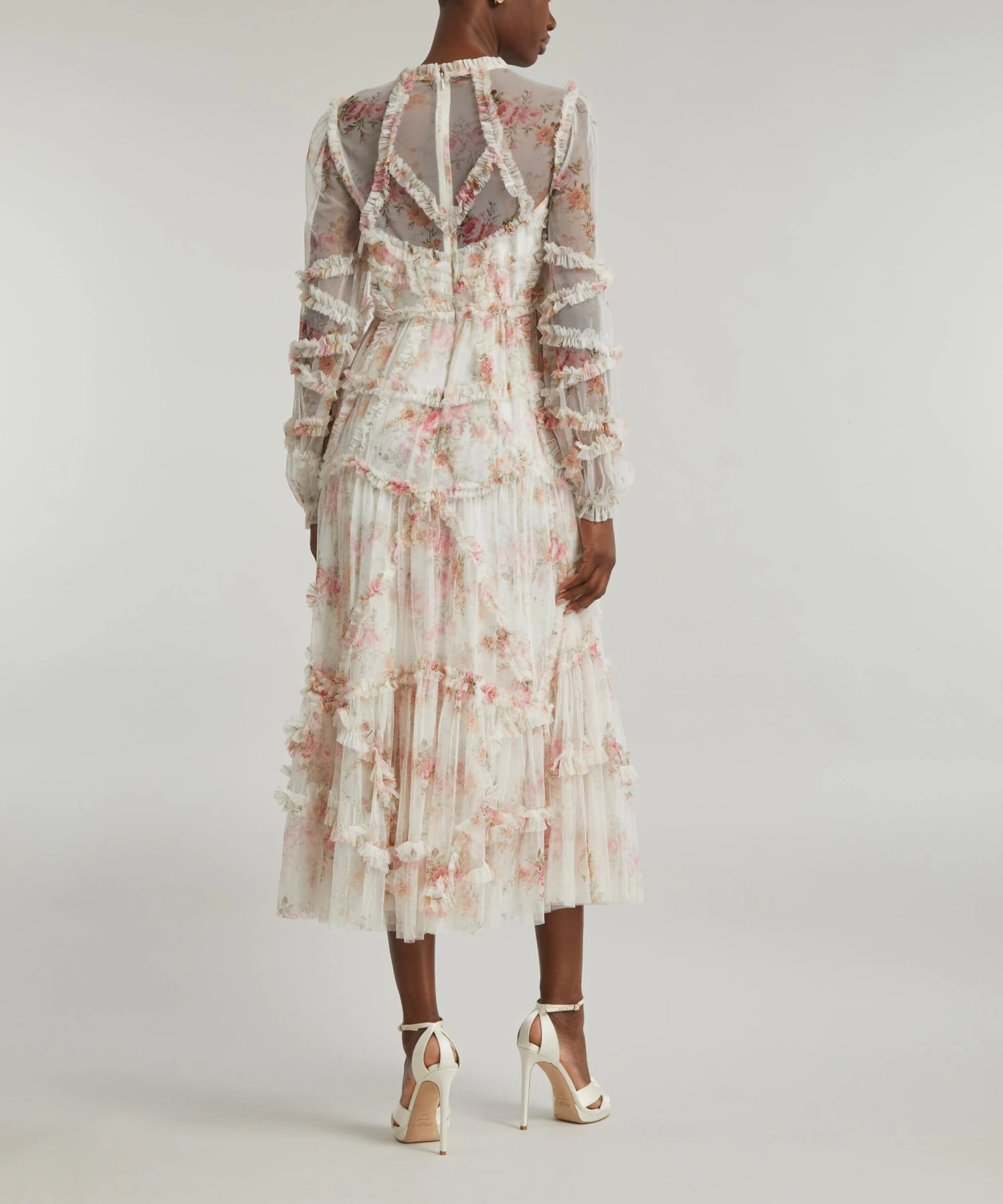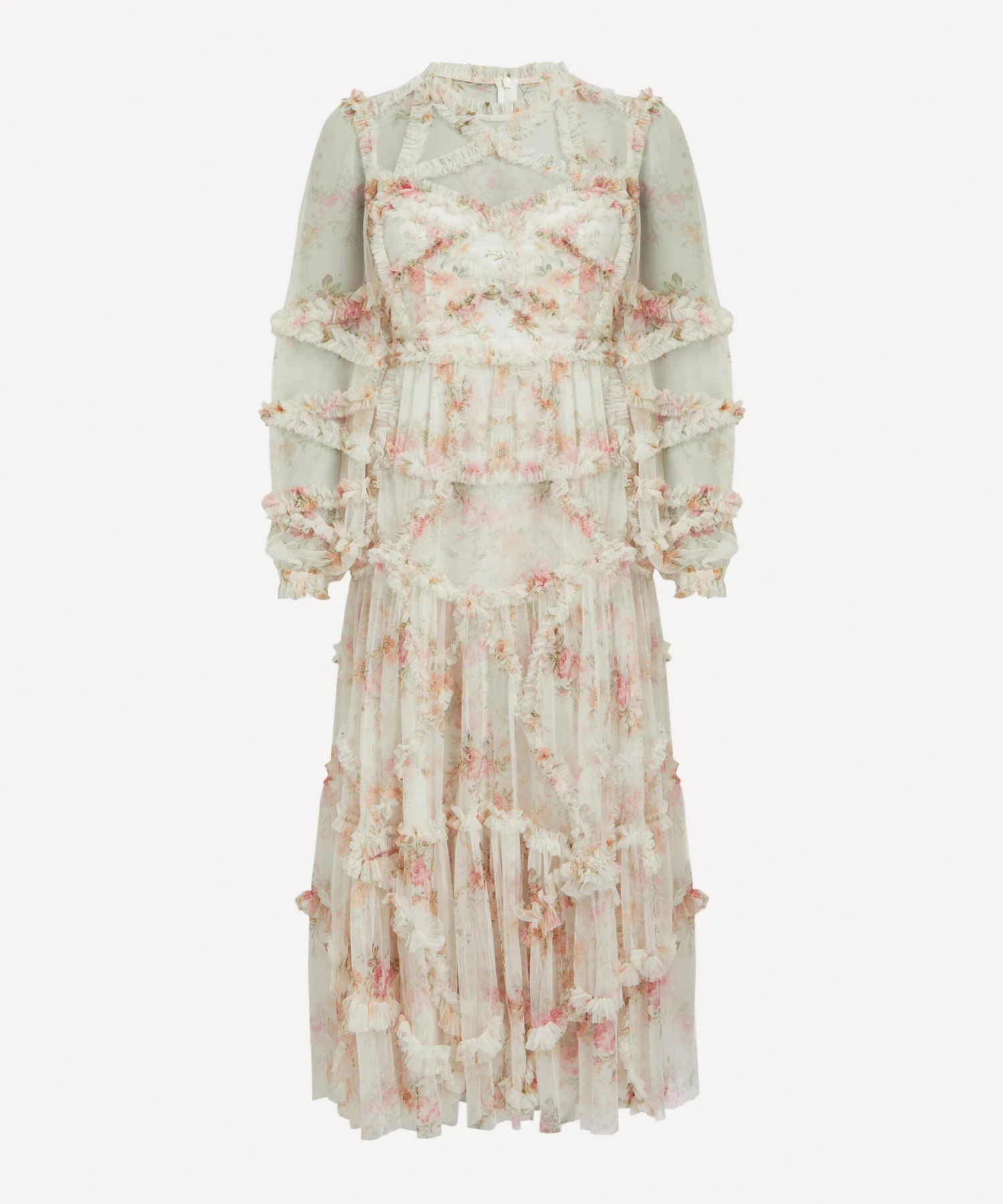 Needle & Thread prides itself on creating the stand-out piece you need for your next celebration – the Trailing Blooms Ruffle Ballerina dress is no exception with its romantic rose artwork.