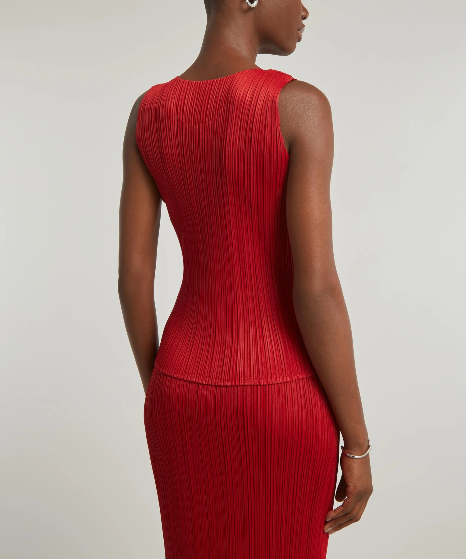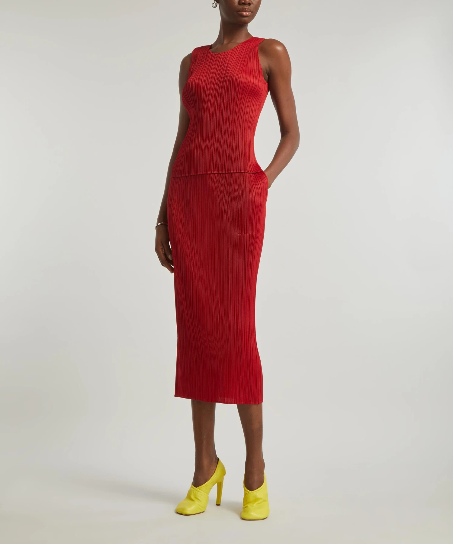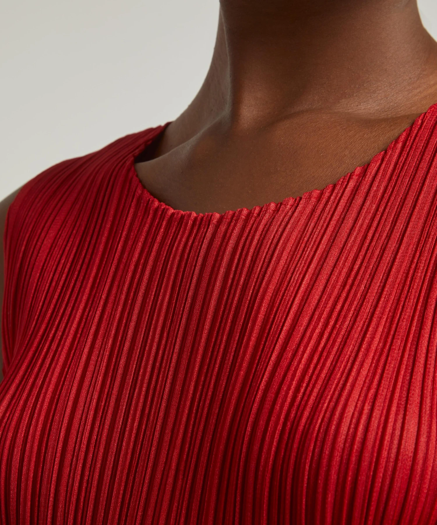 Offering a range of core styles in joyful colours, the NEW COLOURFUL BASICS 3 series from Issey Miyake presents this ravishing red Pleated Top.