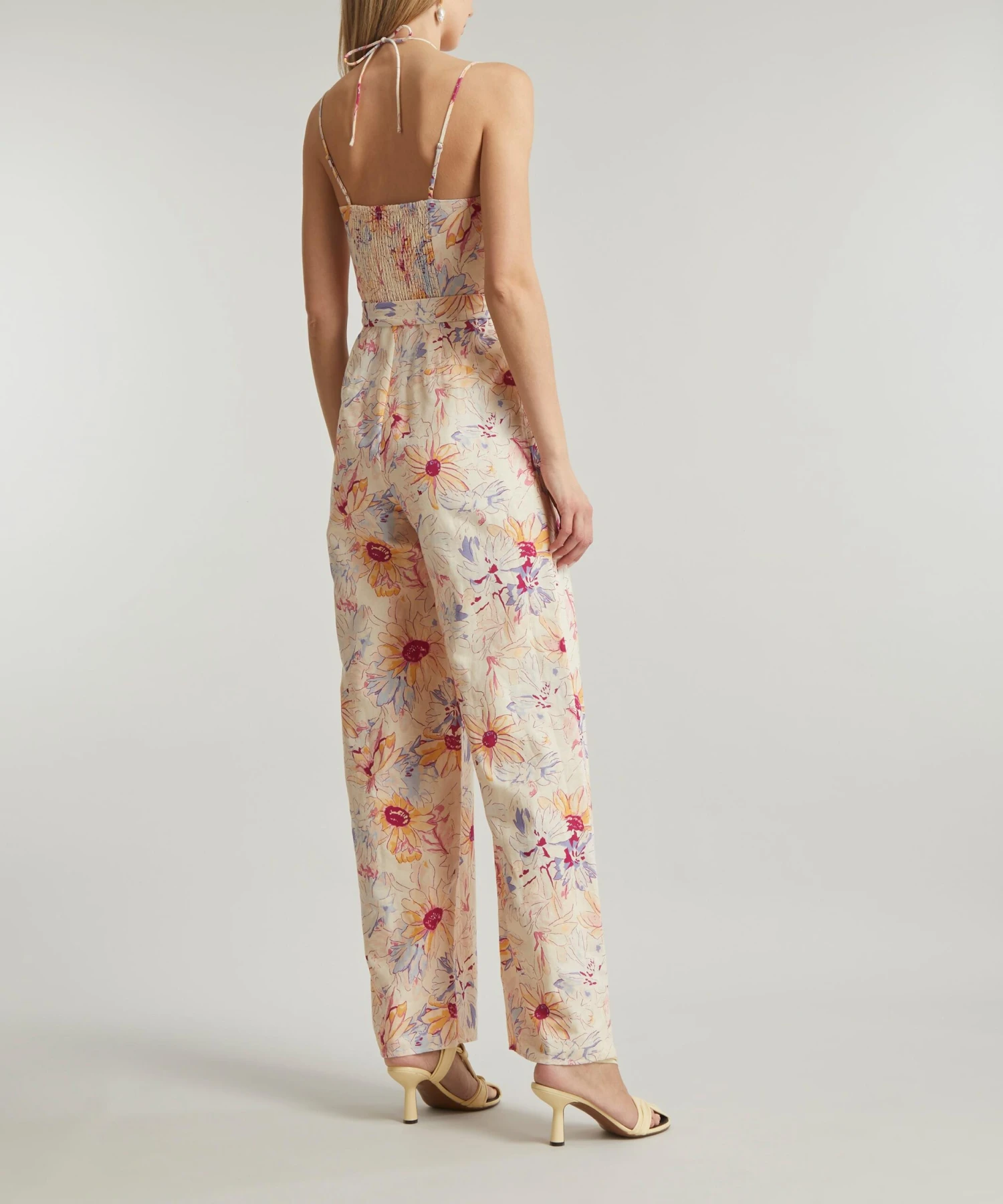 The Akari jumpsuit from cult denim brand PAIGE is an elegant summer essential. Lightweight and loose, it’s crafted from a floral-printed linen and cotton-blend fabric for a relaxed, wide-leg silhouette featuring a strappy bodice and ties at the waist for a cinched finish.