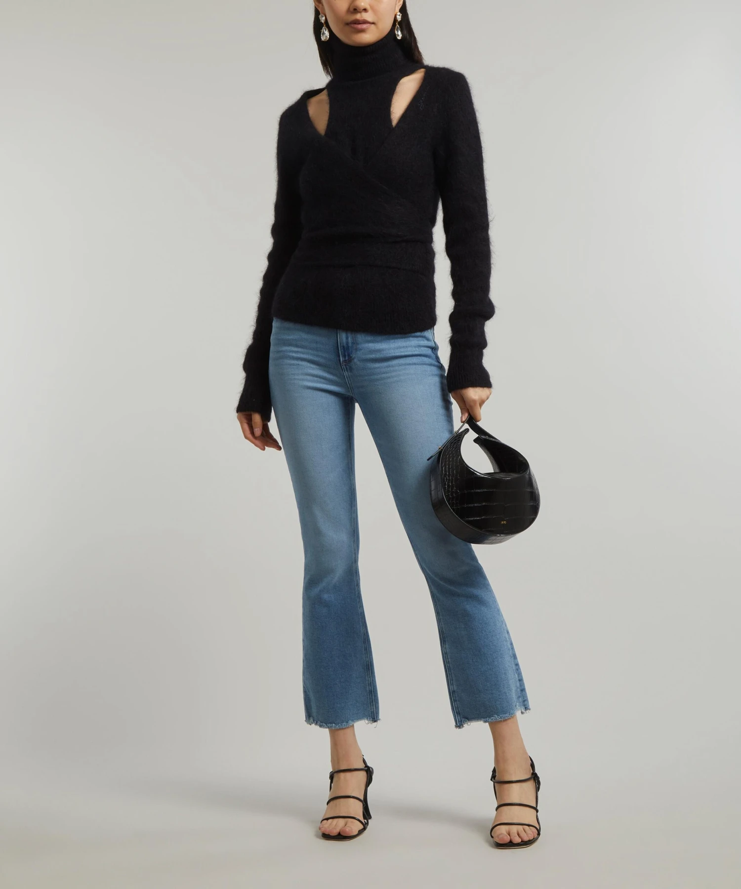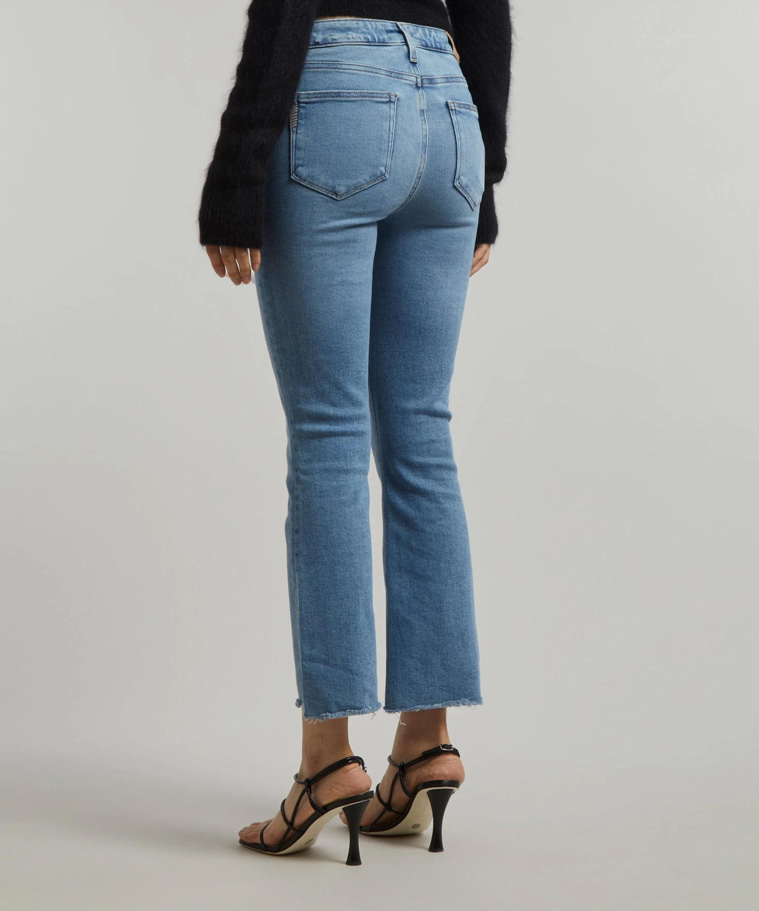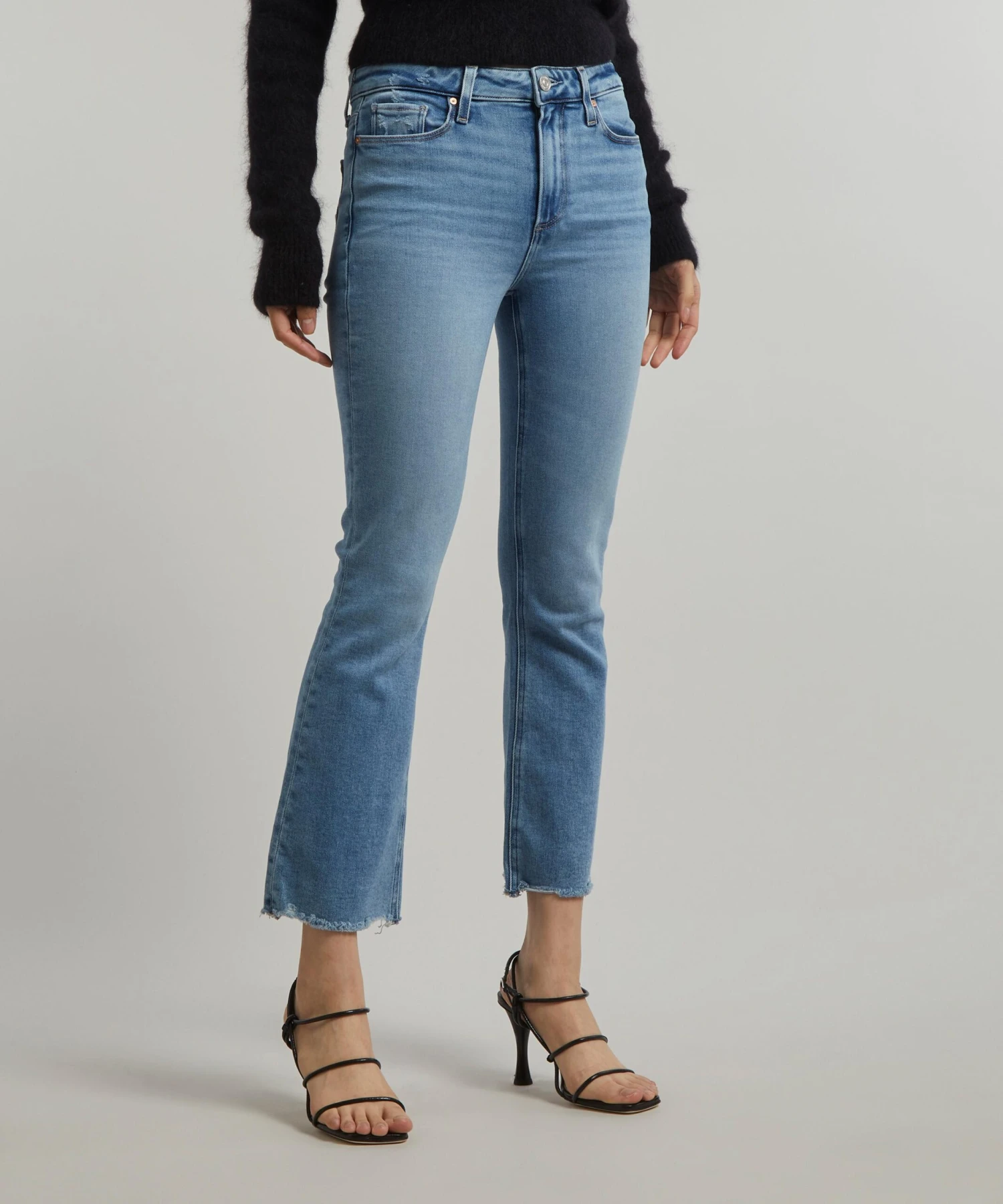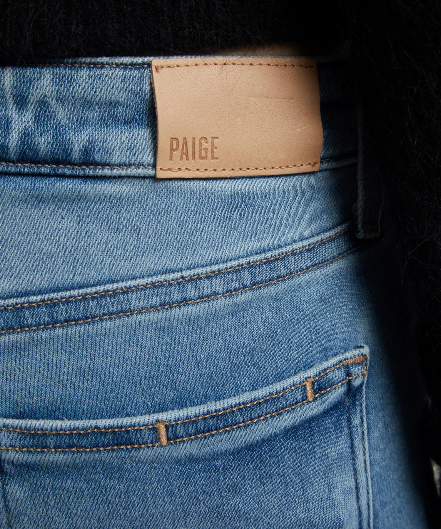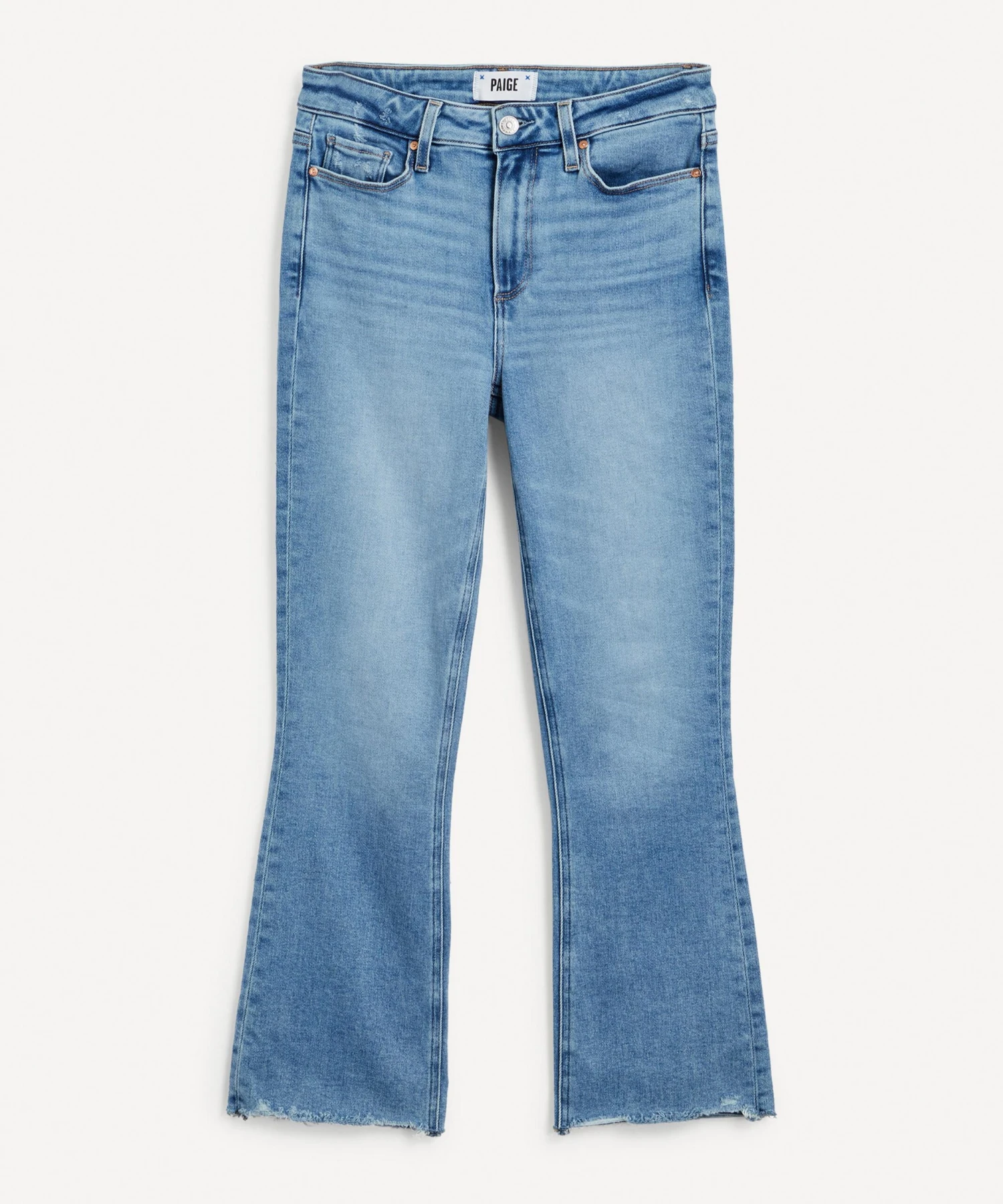 Give your everyday denim edit a grungy edge with the distressed edition of Paige’s signature Colette jeans. Cut from the brand’s signature Transcend stretch-denim for a fitted, skin-tight silhouette, they’re cropped at the ankle with frayed hems for a raw finish. A mid-blue denim with whiskering detail across the legs, they’re complete with classic five-pocket construction and a leather logo patch at the rear.