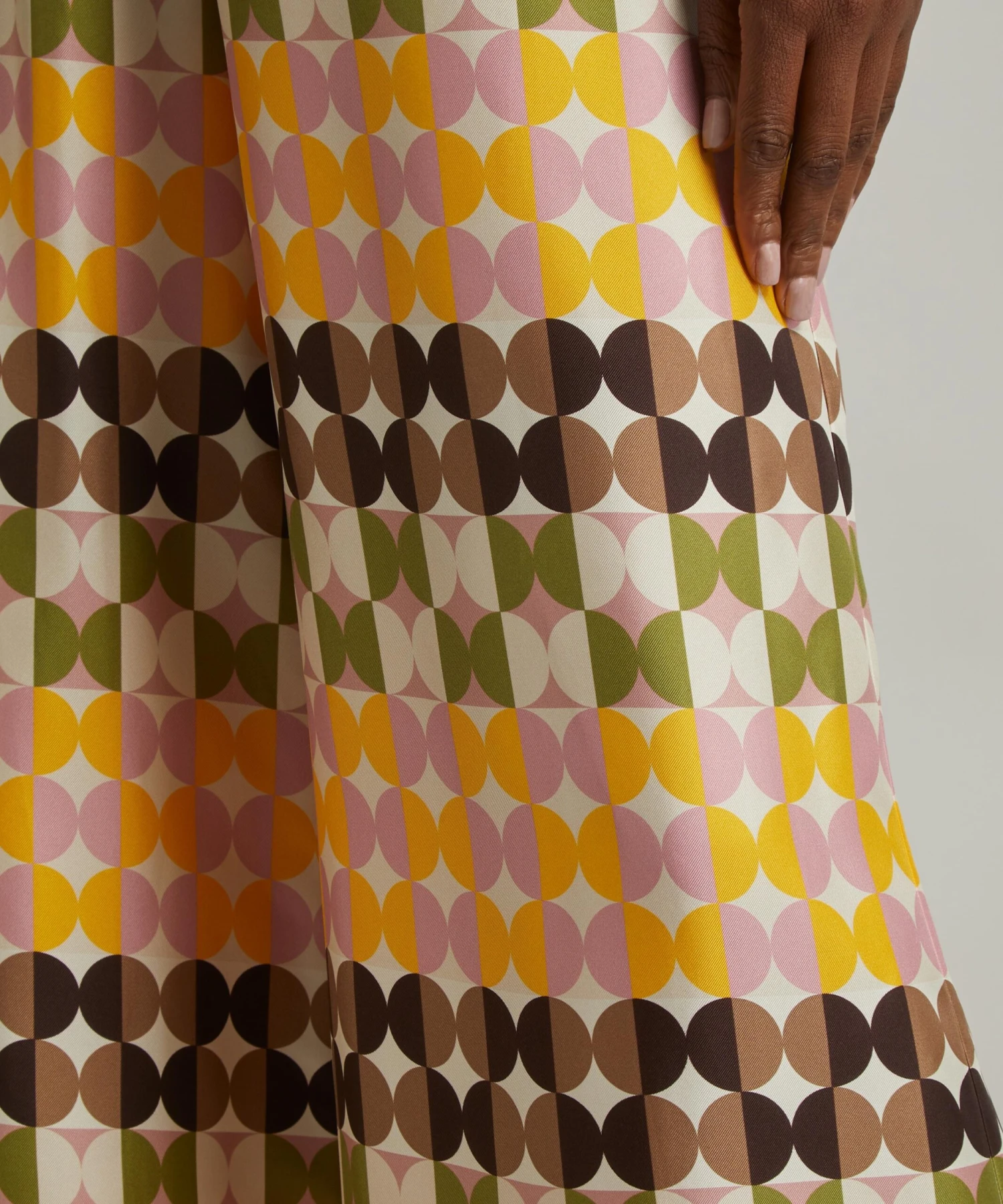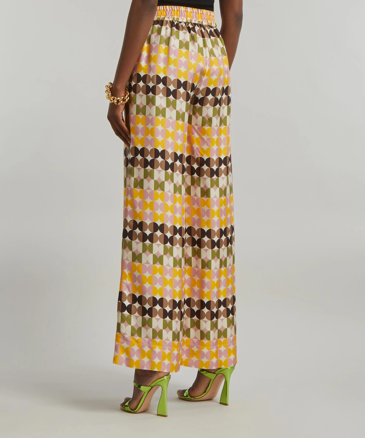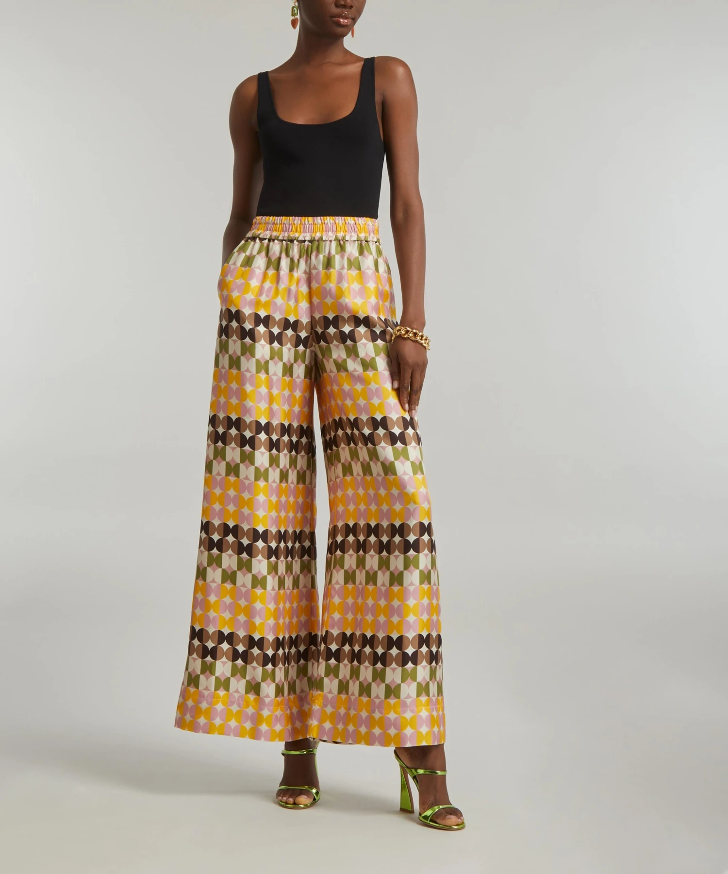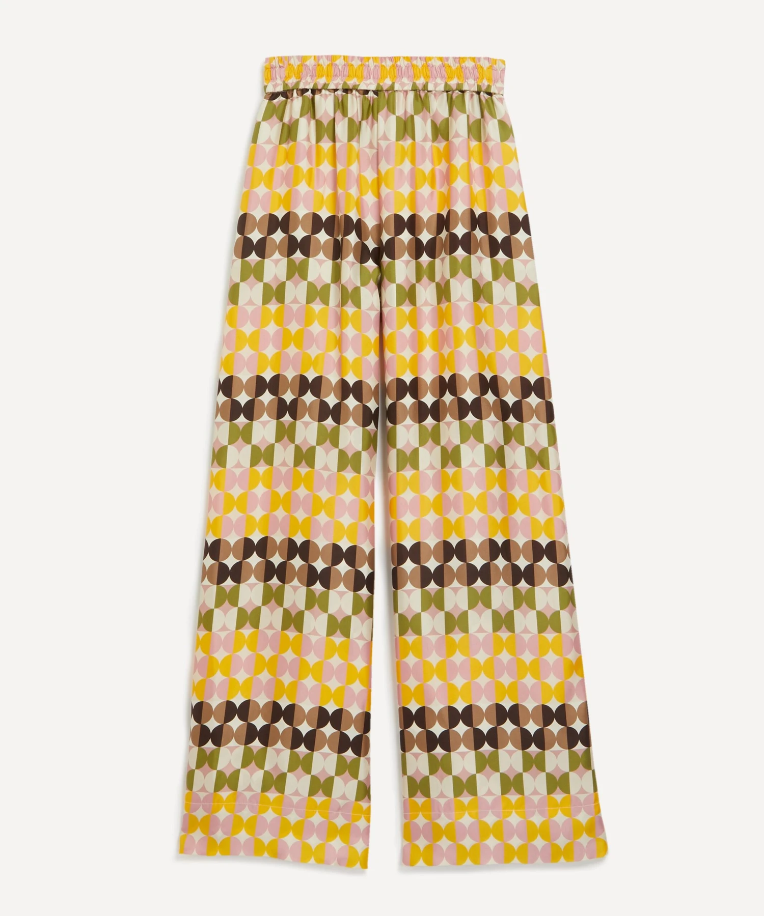 La DoubleJ’s penchant for an over-blown aesthetic shines from these Palazzo trousers, in the brand’s signature Mezzaluna print.