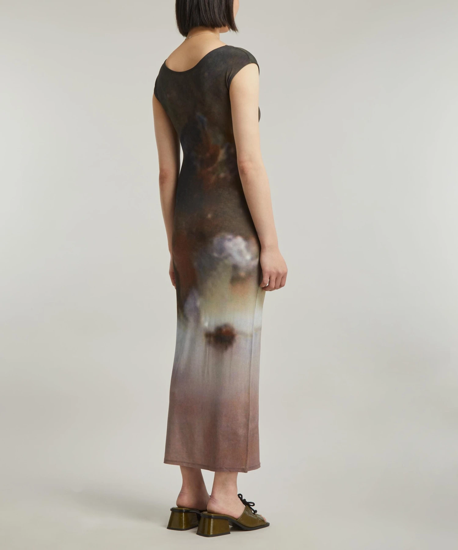Bold and brimming with eccentricity that the brand is revered for, Maddi Reversible dress from Barcelona-based label Paloma Wool is a playful addition to your new season collection. A form-fitting silhouette with cap-sleeves and a two-way reversible cross-chest, this long dress showcases a mottled oyster digital print.