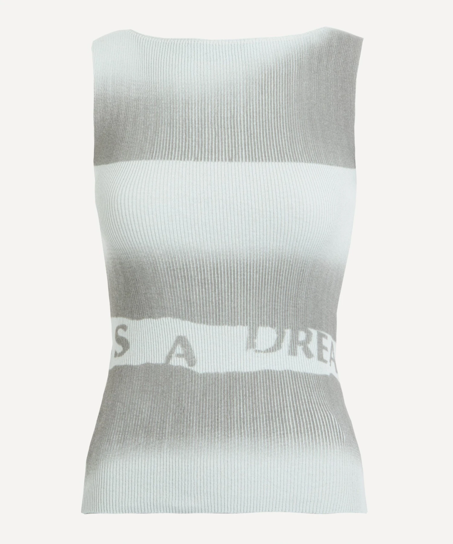Bold and brimming with eccentricity that the brand is revered for, the Violet Digital Print top from Barcelona-based label Paloma Wool is a playful addition to your new season collection. Crafted from a ribbed, cotton-stretch fabric for a form-fitting silhouette, this sleeveless tank top features an elegant boat-neckline and showcases an abstract digital print.