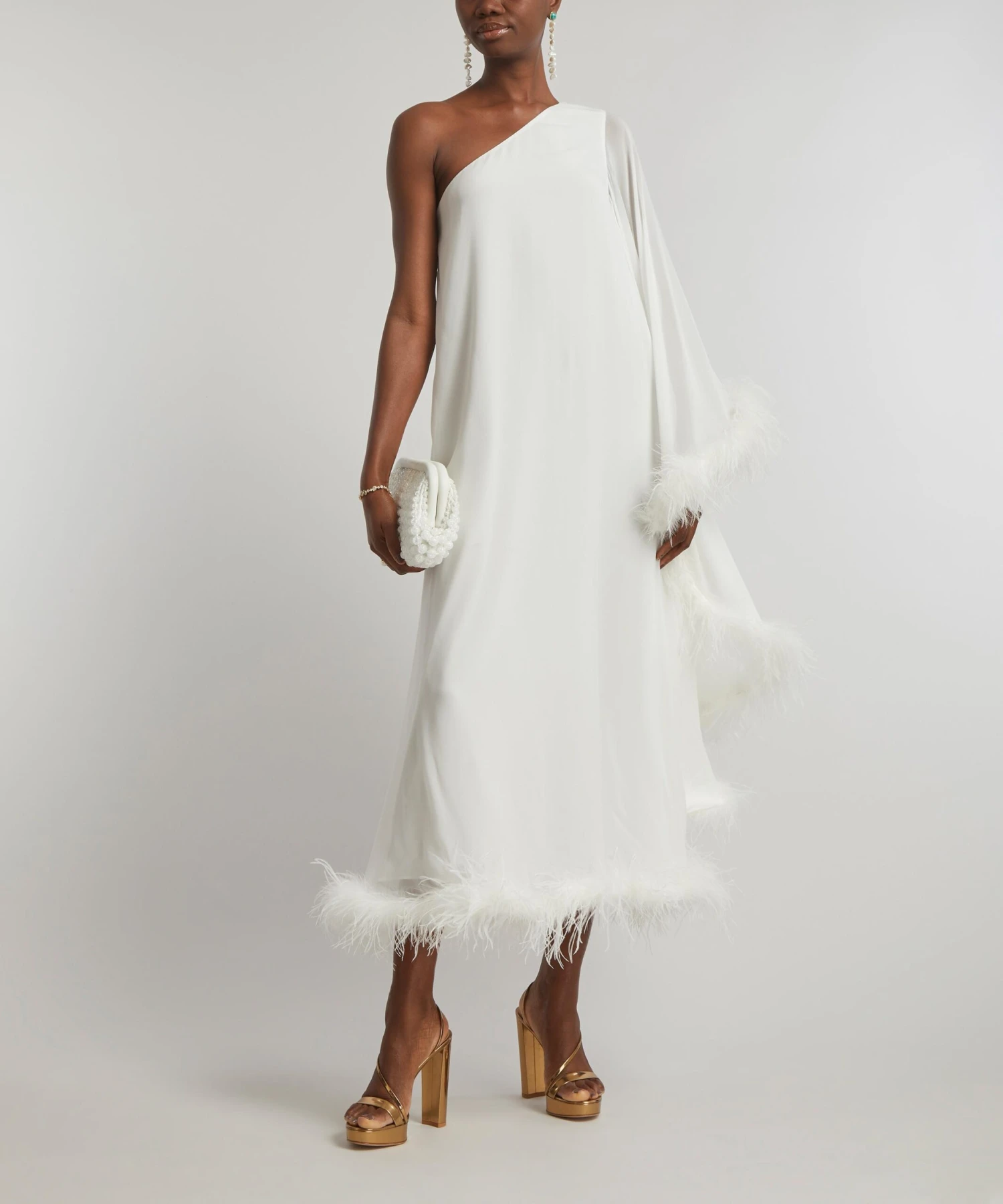 Effortlessly flattering and feminine, RIXO’s vintage-inspired bridal styles look as beautiful in antique frames as they do on Instagram – the Liza dress is no exception. Inspired by the Golden Age of 1930s Hollywood, this statement-making, single-sleeve dress is embellished with a dramatic feathered trim for ultimate glamour. A long, loose-fit crafted from viscose-crepe, this free-flowing, playful piece is perfect for dancing the night away in.