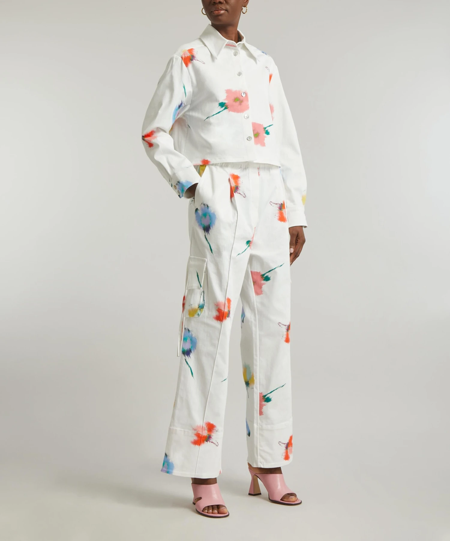 Crafted from cotton for a lightweight and loose silhouette, this floral-printed pair is fitted with cargo pockets at the side, and an elasticated drawstring waist for a super-comfortable fit. Pair them with the matching Safari Flower Print Crop Shirt for an effortlessly chic ensemble.