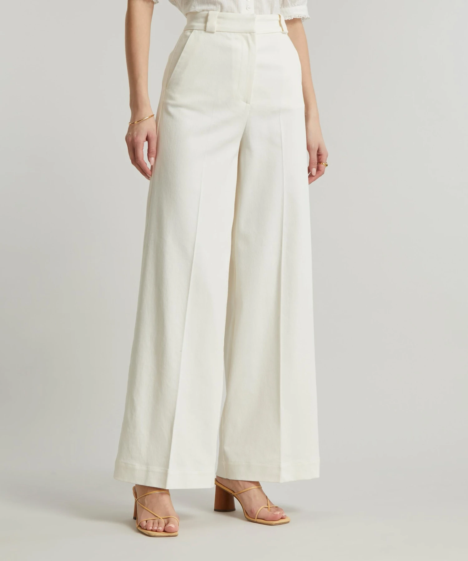 Effortlessly sophisticated, the Summer Captain trousers from Parisian label Sessùn bring the label’s Parisian nonchalance to your summer sartorial collection. Crafted from premium weave crinkle steep twill for a loose, wide-leg silhouette, its high-rise waist is fitted with chunky belt loops, and pleat detail at the front and rear for a classic, tailored finish.