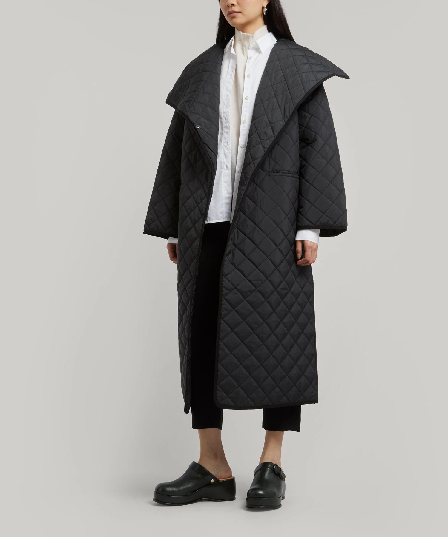 Totême’s signature cut coat moves seamlessly from weekday to weekend – this quilted iteration is crafted in 100% recycled fabric.
