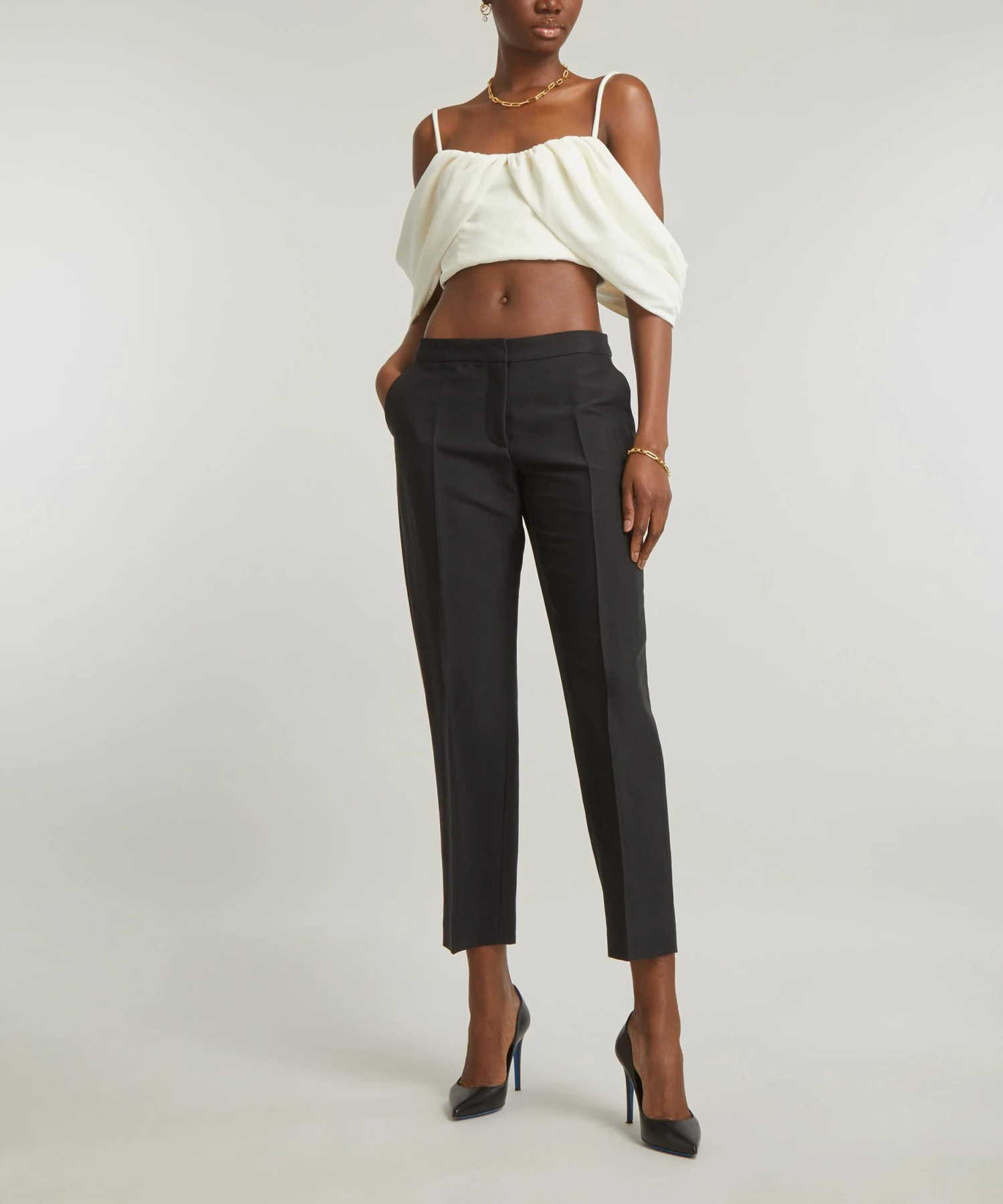 Make an effortlessly sophisticated statement in the Velvet Drape Detail Crop Top from luxury Australian label, BEARE PARK. Luxuriously crafted from velvet for a cropped fit, its fitted bodice features a soft, romantic neckline and draped shoulder detail.